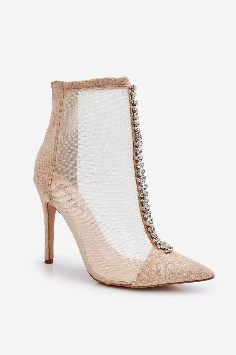 Модні жіночі чоботи на шпильці з сіткою бежеві Rummi