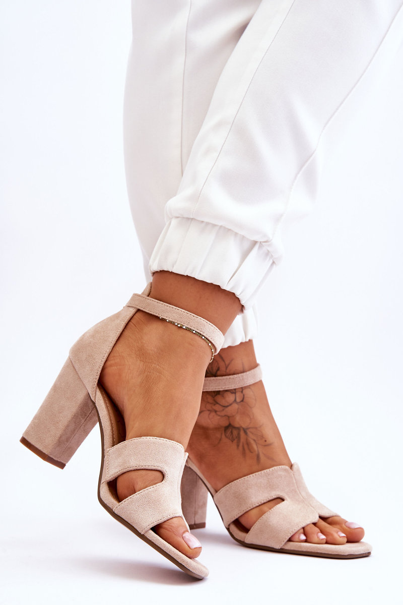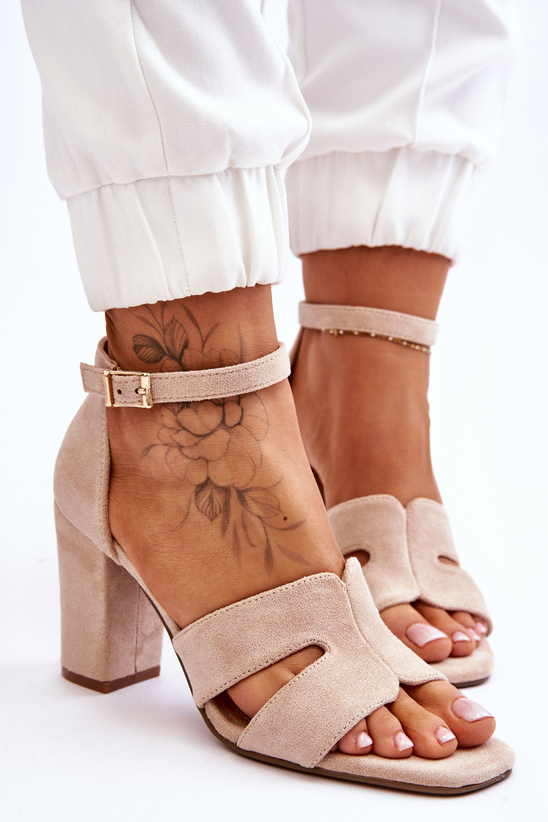 Модні замшеві босоніжки на високих підборах бежеві Aubrey