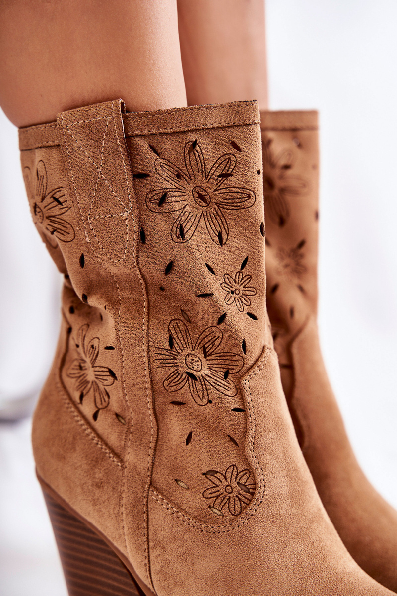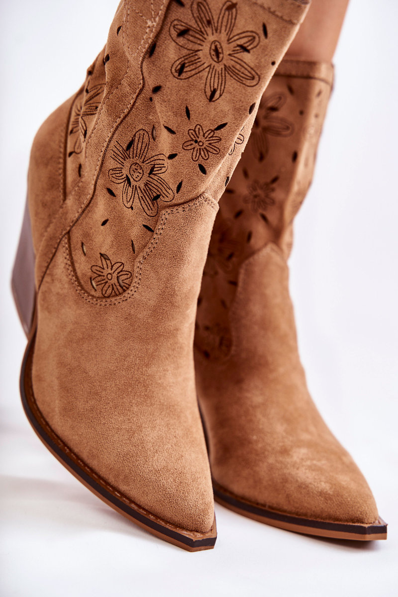 Модні замшеві ковбойські чоботи з квітами Camel Coralie