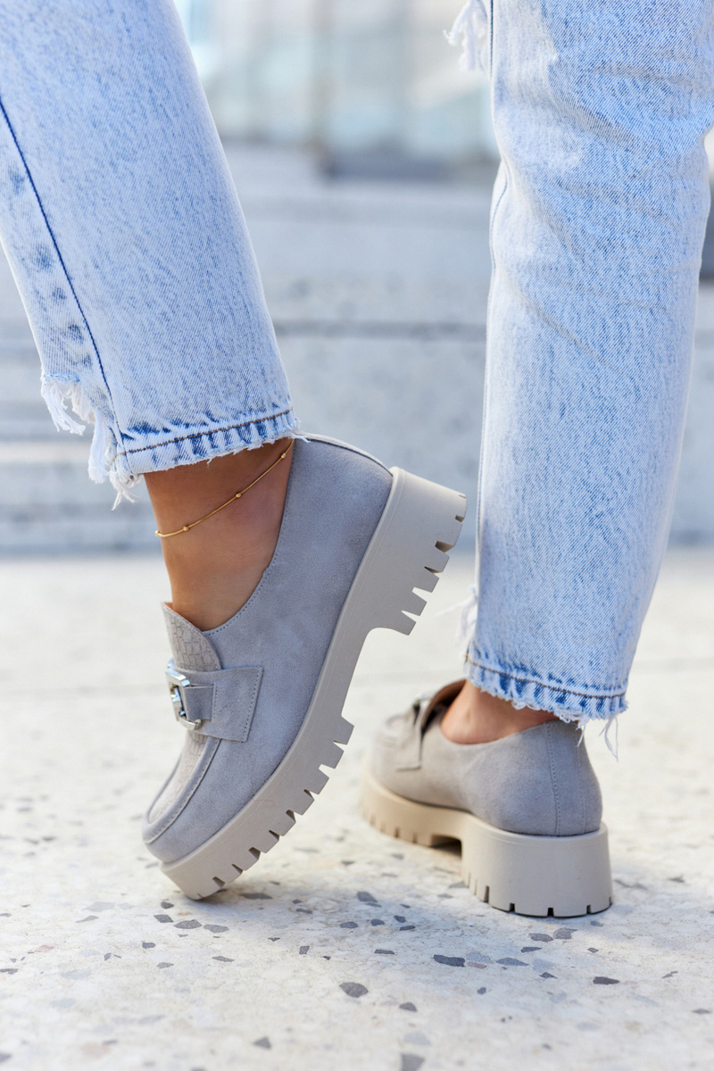Сліпони з натуральної замші із заокругленим носом. Вони кріпляться на масивній платформі і плоскому стійкому каблуці. Модель з високим протектором підошви. Зверху декоративний ланцюжок. Під язиком є еластична гумка, завдяки якій взуття буде більш сидіти по нозі. Туфлі мають посилений каблук. Модно, зручно, зроблено з увагою до деталей - одним словом: ідеально! М'яка натуральна шкіряна устілка подбає про ваш комфорт. При виборі розміру скористайтеся таблицею розмірів.