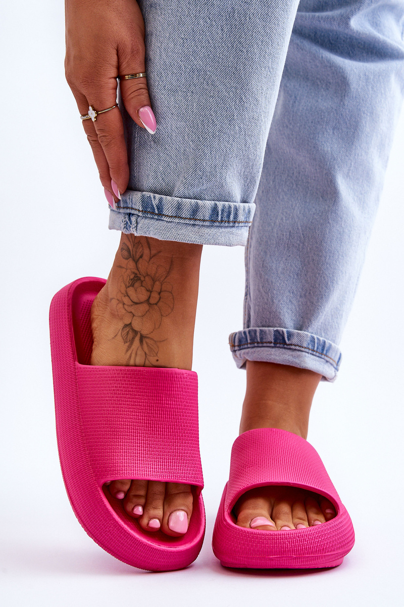 Модні легкі шльопанці на масивній підошві кольору фуксії Rebel