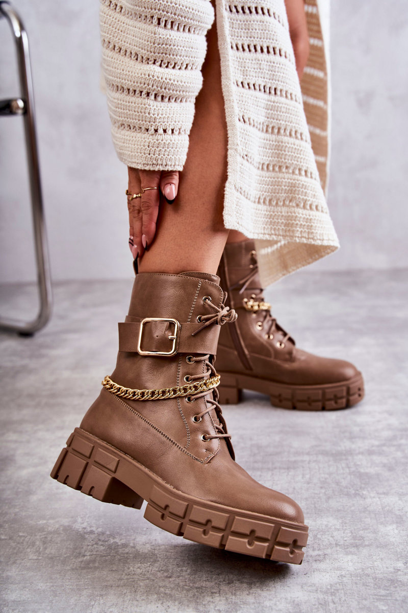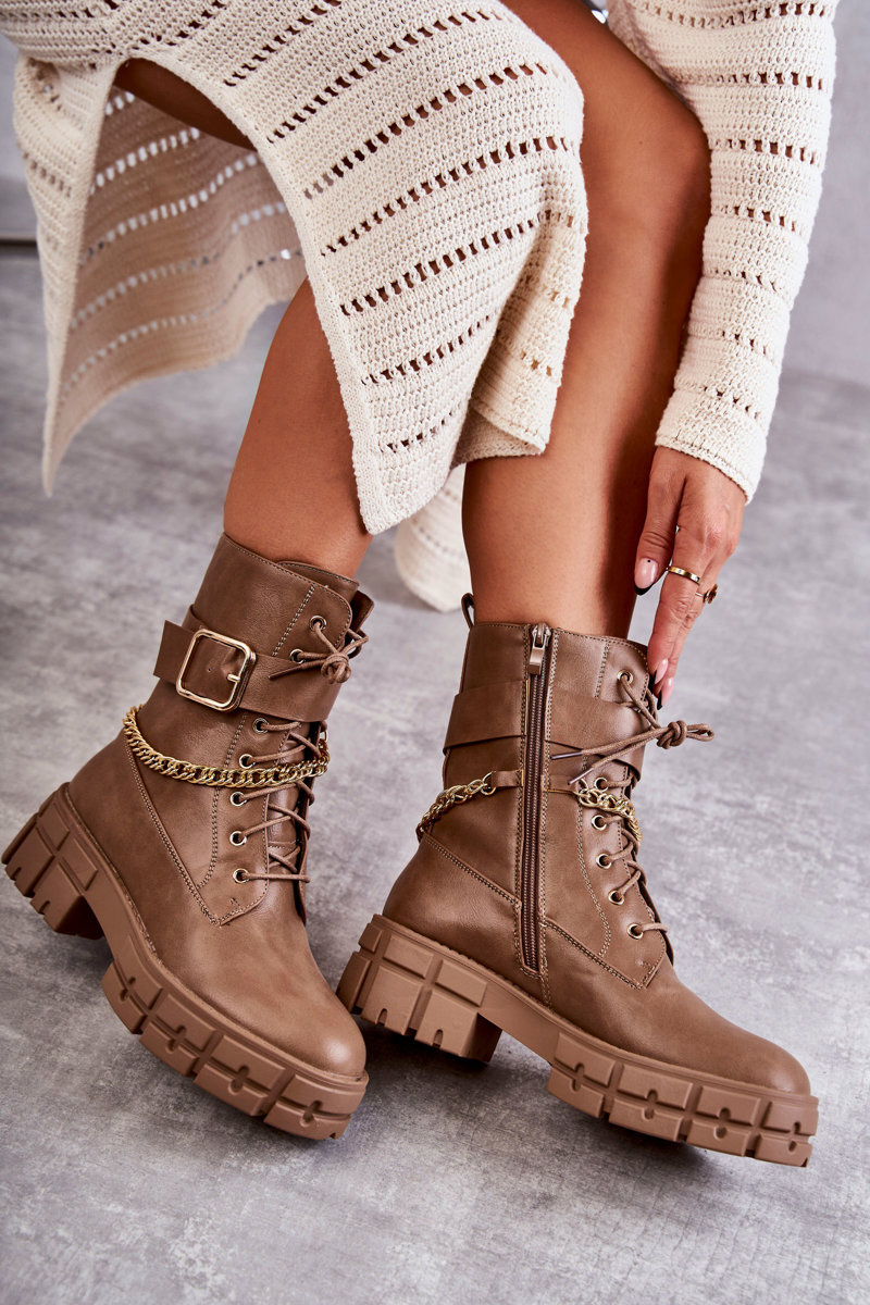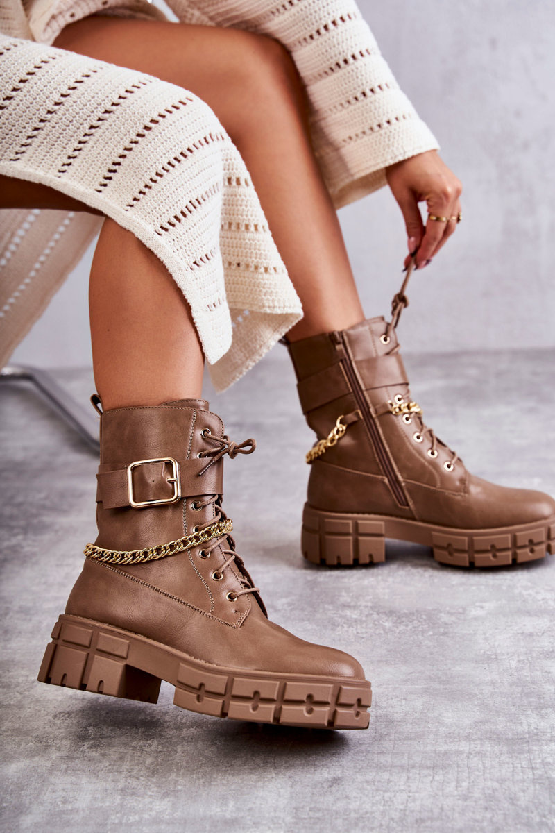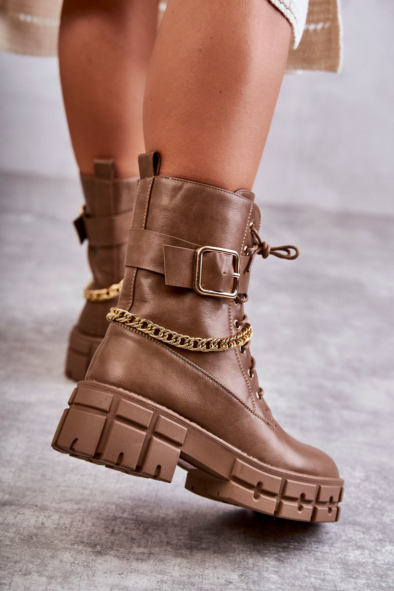 Модні робочі черевики з ланцюжком Коричневий Solesso