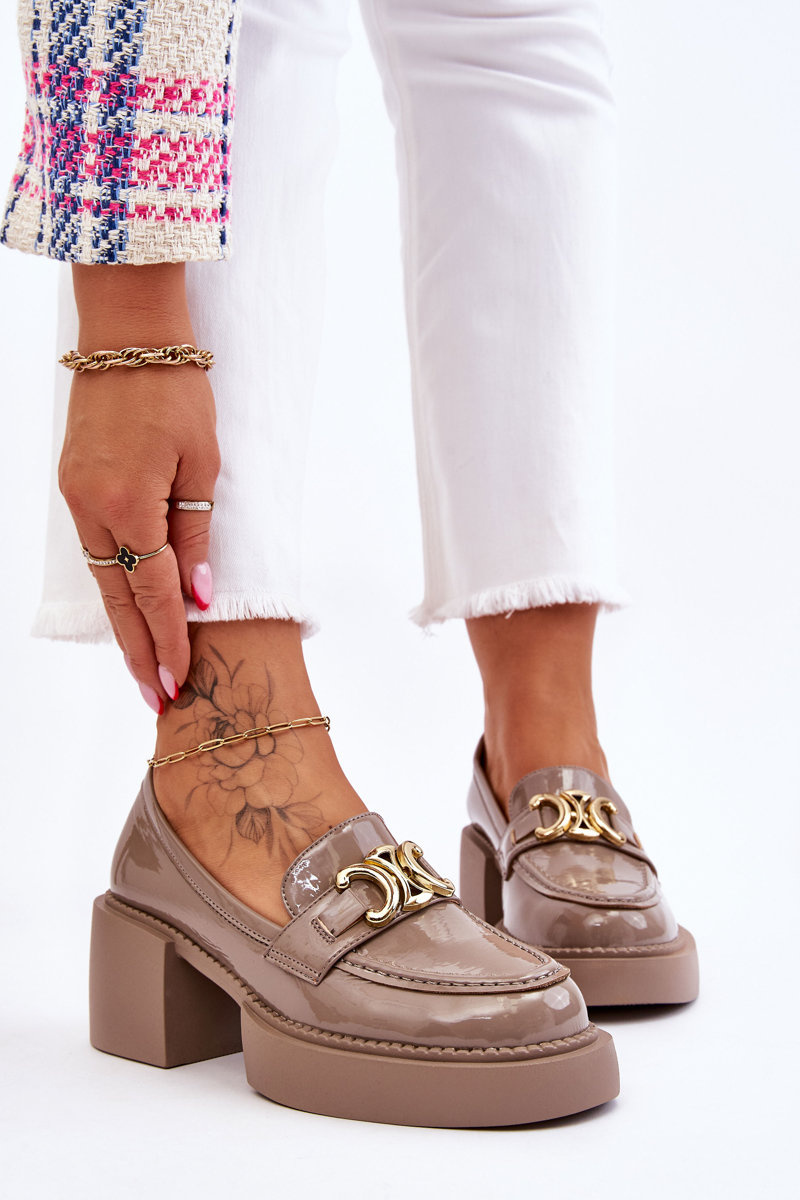Модні туфлі-броги на масивних підборах бежеві Imani