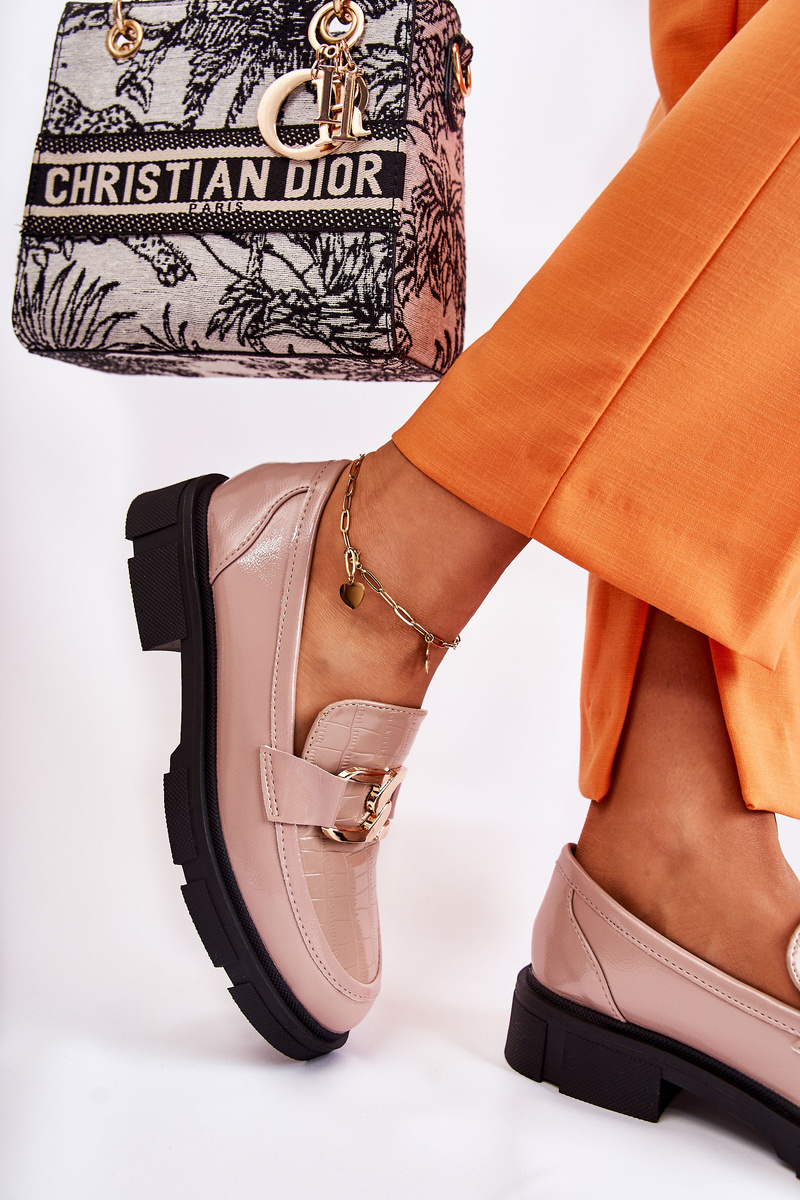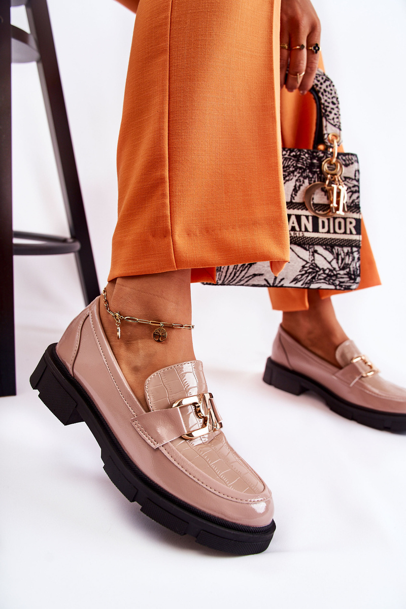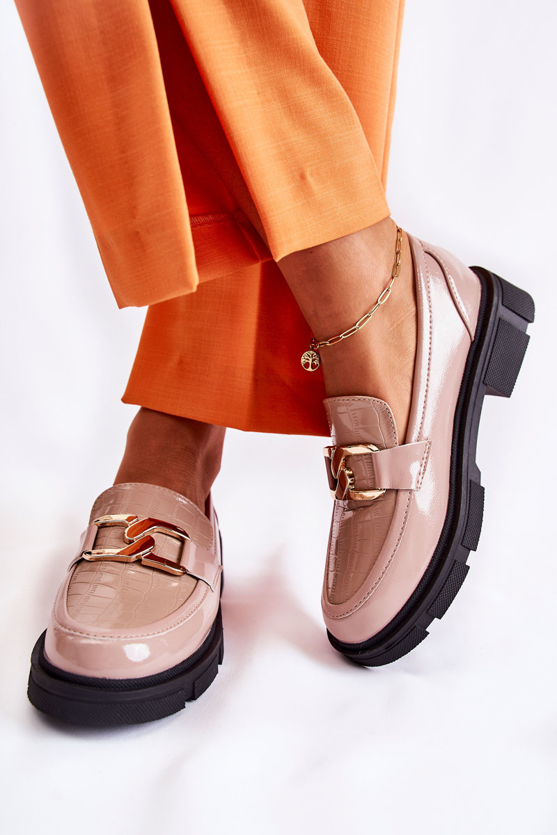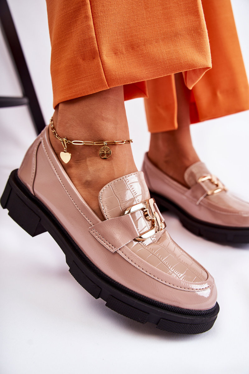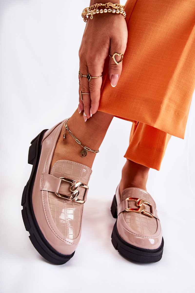 Модне взуття з м'якої еко шкіри. Мають округлий носок. Вони кріпляться на неправильній товстій підошві з плоским каблуком. Верхня щиколотка. На висоті плеснової кістки ефектна прикраса у вигляді пластикового ланцюжка. М'яка устілка з екошкіри забезпечить комфорт вашим ніжкам навіть протягом дня. Елегантні лофери чудово поєднуються з класичними брюками або спідницею. При виборі розміру скористайтеся таблицею розмірів.
