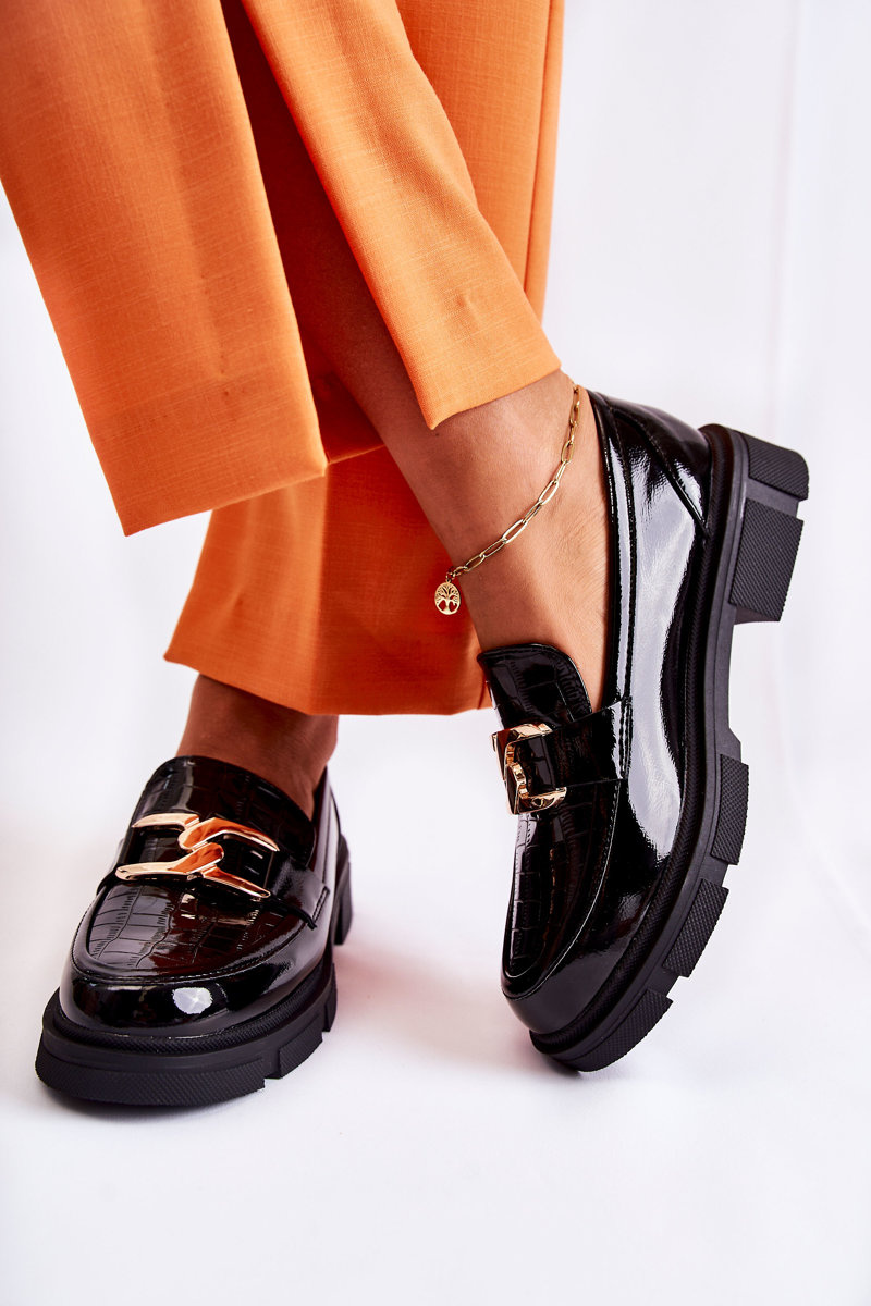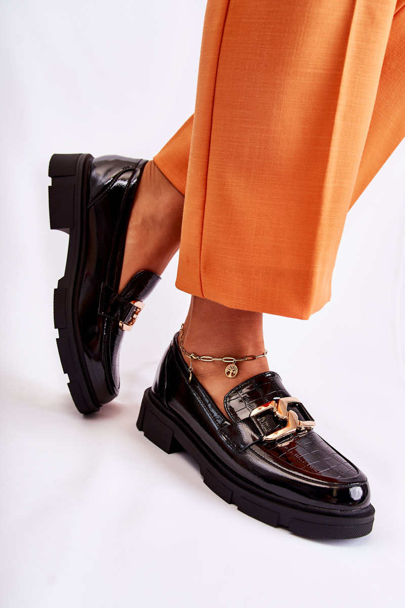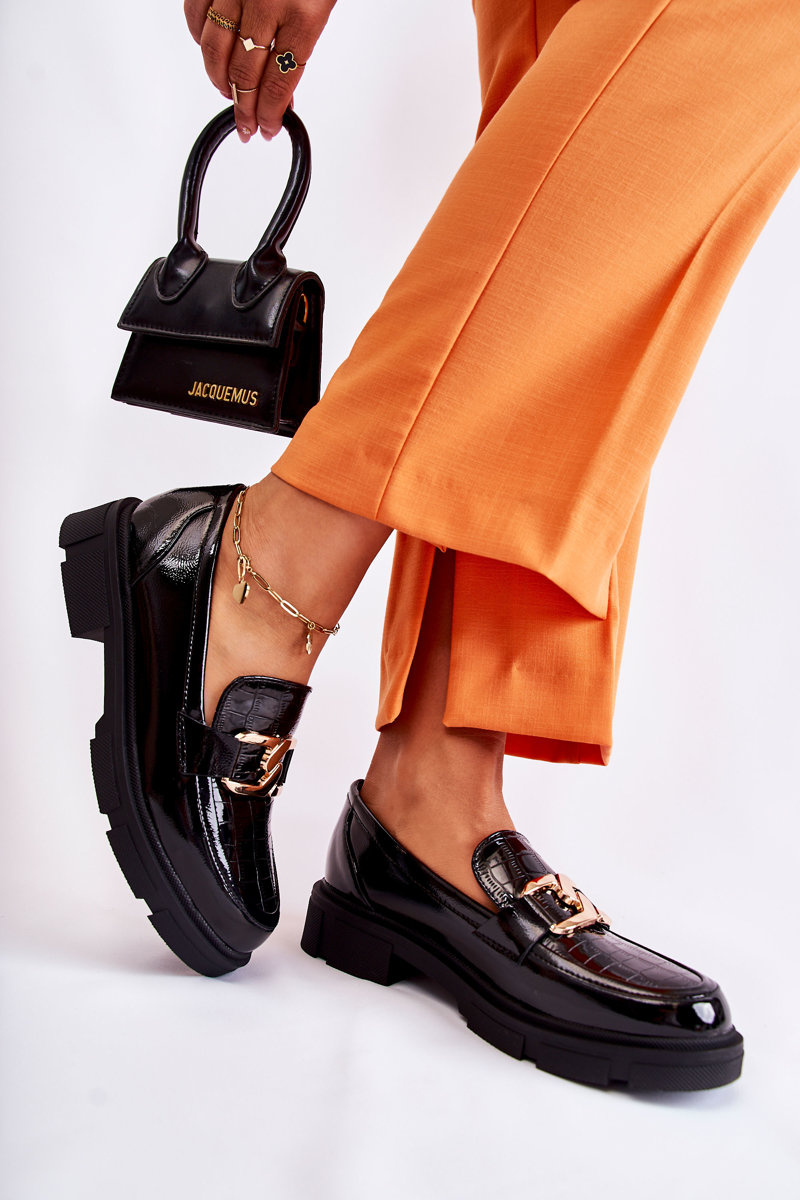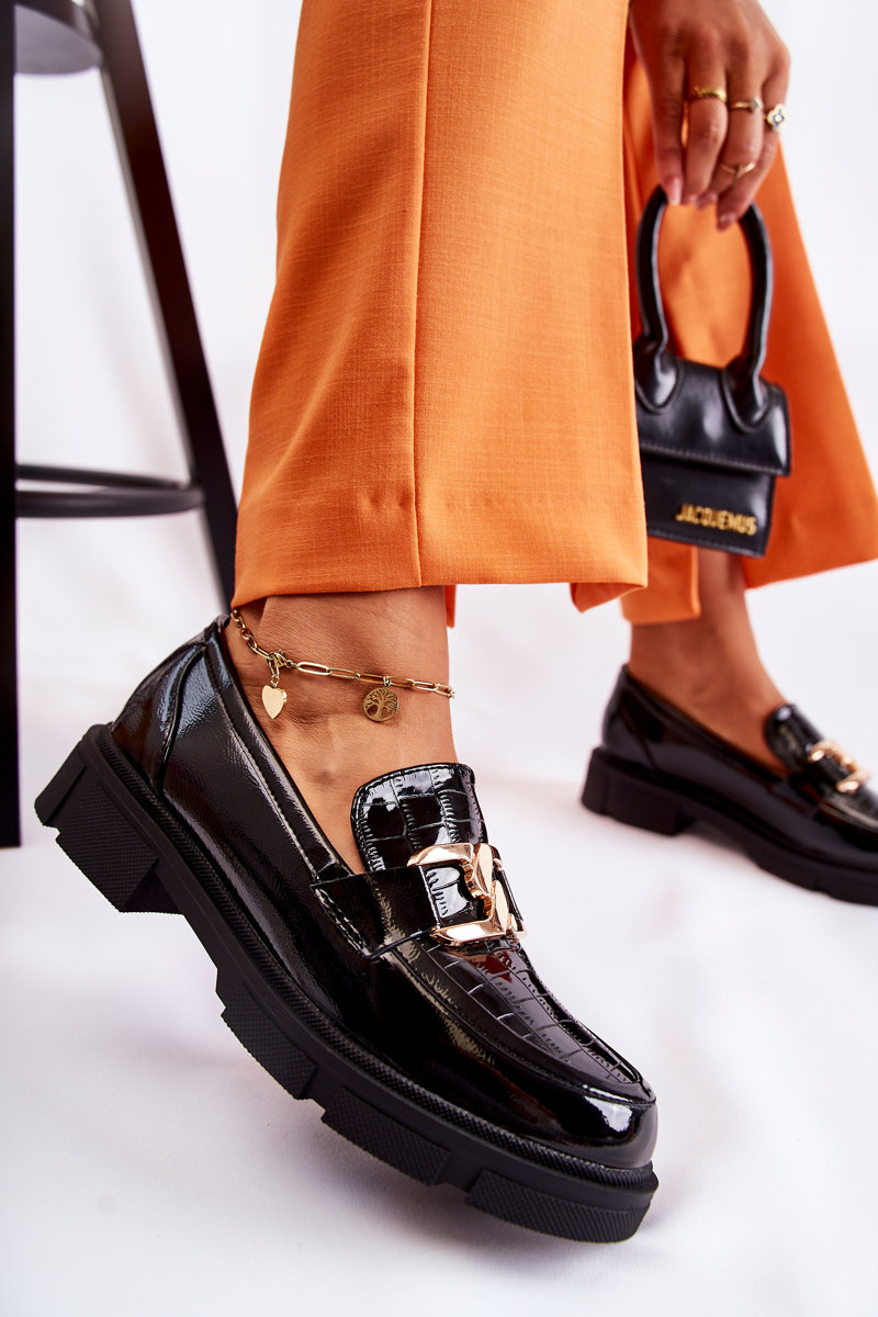 Модне взуття з м'якої еко шкіри. Мають округлий носок. Вони кріпляться на неправильній товстій підошві з плоским каблуком. Верхня щиколотка. На висоті плеснової кістки ефектна прикраса у вигляді пластикового ланцюжка. М'яка устілка з екошкіри забезпечить комфорт вашим ніжкам навіть протягом дня. Елегантні лофери чудово поєднуються з класичними брюками або спідницею. При виборі розміру скористайтеся таблицею розмірів.