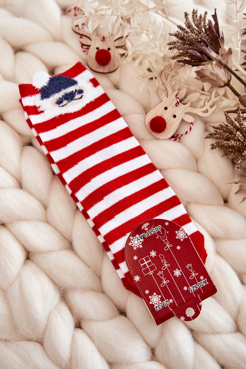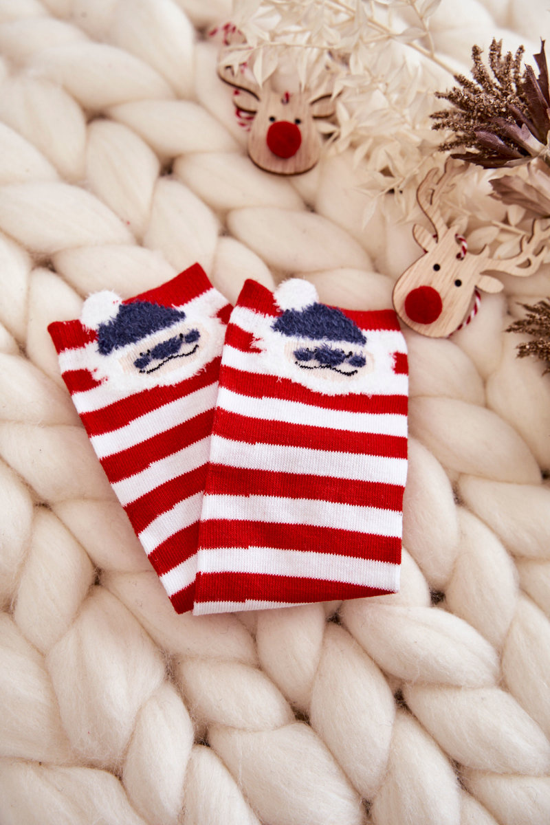 Молодіжні смугасті шкарпетки з Дідом Морозом червоно-білі