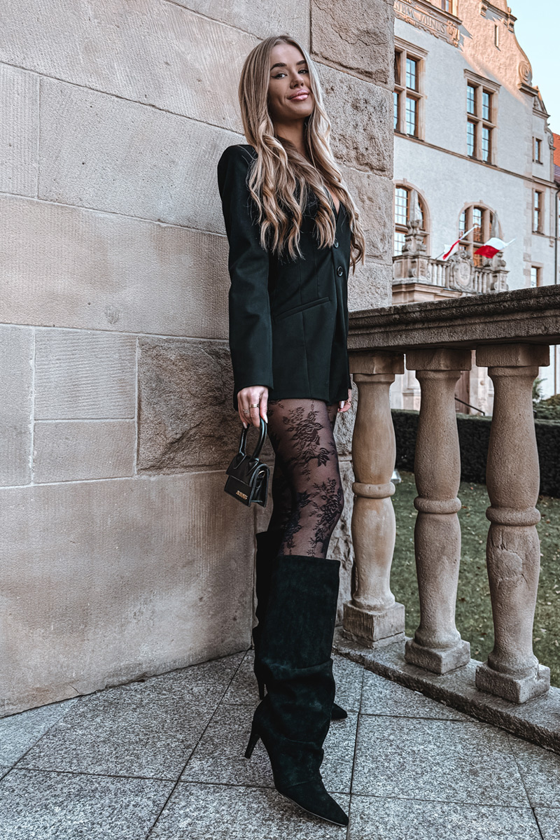 Жіночі чоботи, виготовлені з м'якого штучного замшу, є елегантним і жіночним варіантом для прохолодних днів. Модель на тонкому каблуці красиво підкреслює ноги, а гострий носок додає шику і візуально звужує силует. Зібрана, вільна верхня частина надає всьому модний характер. Взуття легко надягати і воно утеплене взуттєвим ковдрою, що забезпечує комфорт і тепло. Це дуже стильний фасон, який чудово доповнить як елегантні сукні, так і повсякденні комплекти з джинсами, створюючи модний і жіночий образ. Обираючи розмір, будь ласка, керуйтеся таблицею розмірів.