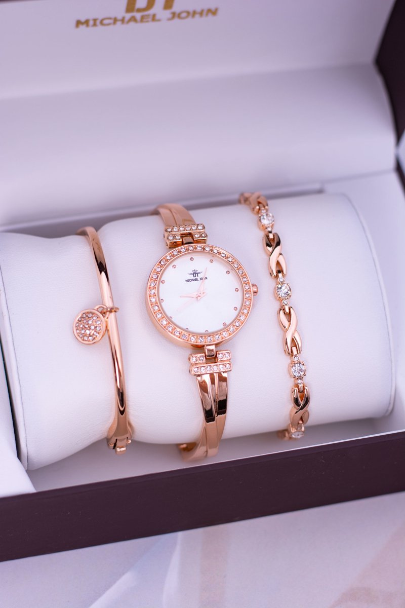 Набір жіночих цирконієвих годинників Майкла Джона з двома браслетами з рожевого золота
