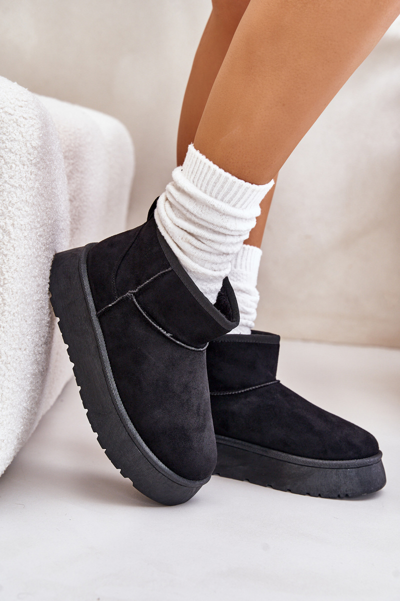 Низькі жіночі зимові черевики на платформі, утеплені хутром чорного кольору Saldren