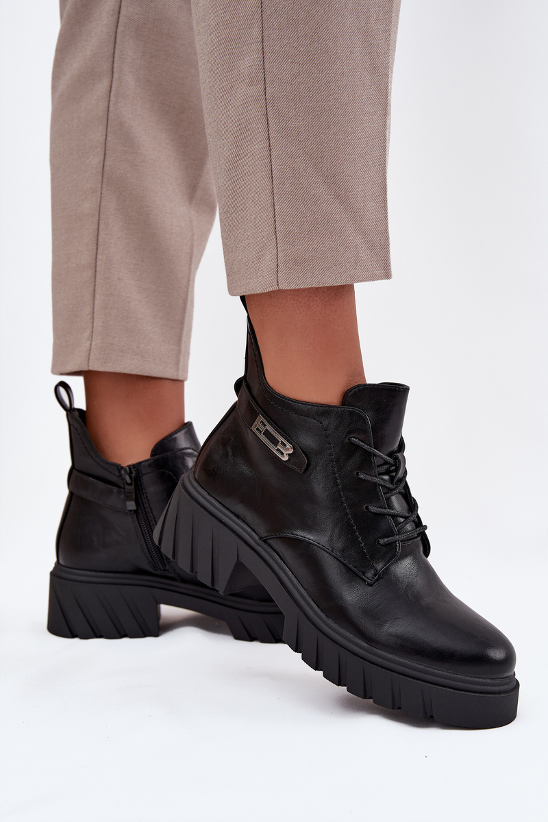 Низькі утеплені жіночі черевики на підборах з оздоблювальним ремінцем Чорні Therisse