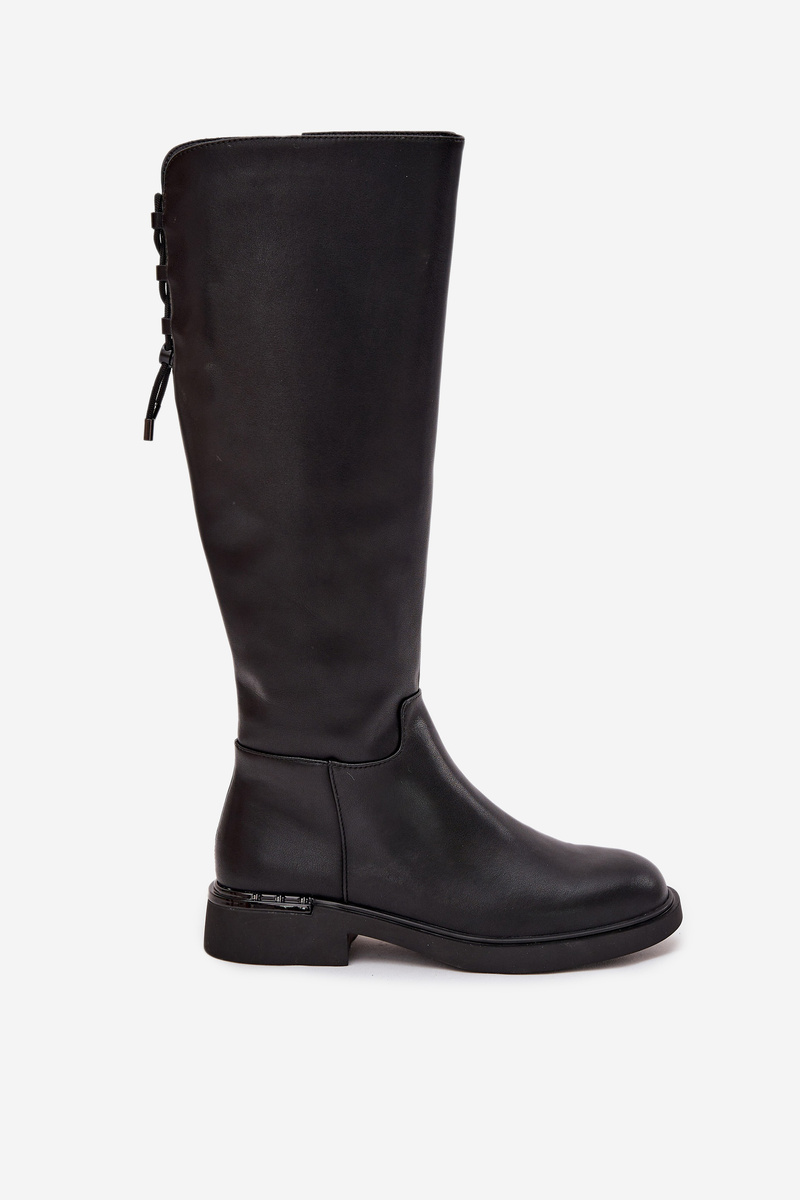 Обігріті жіночі черевики з натуральної шкіри на плоскому каблуці Vinceza 66822 Чорний