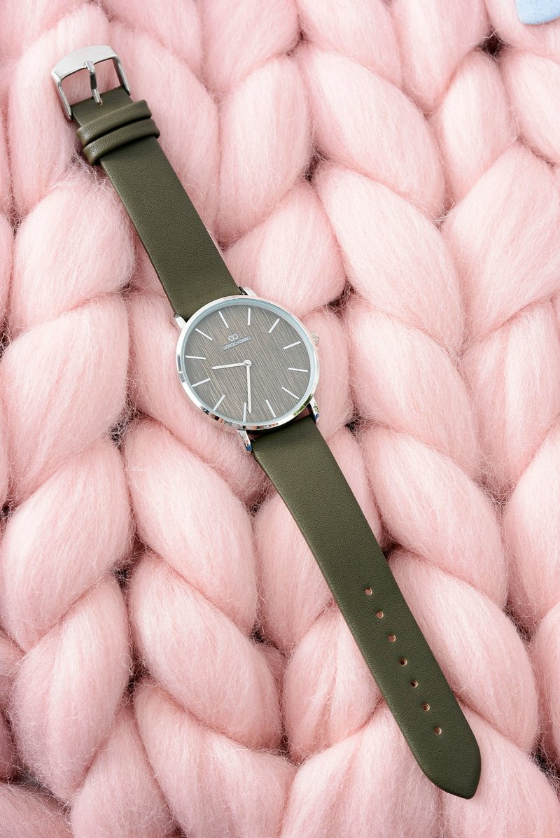 Оливковий стильний шкіряний жіночий годинник Giorgio&Dario