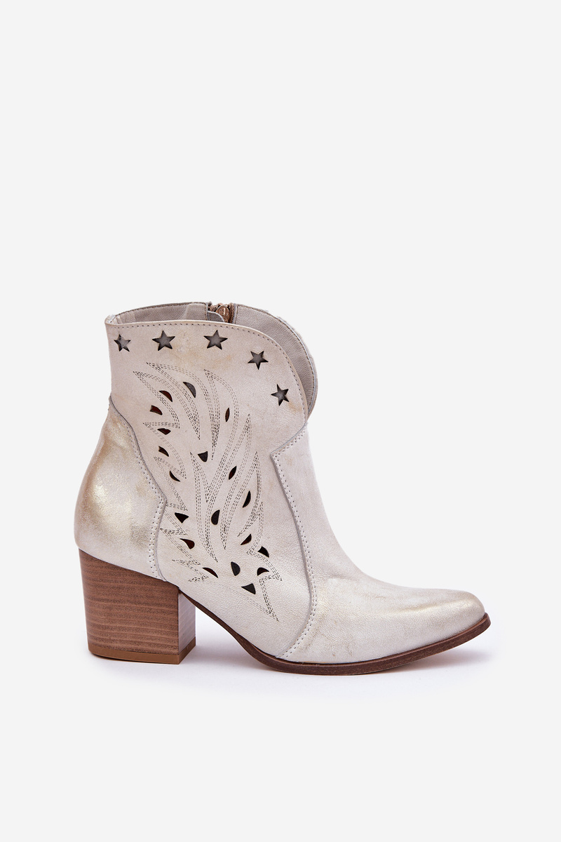 Перфоровані Замшеві Ковбойські Чоботи На Каблуку Зношені Золоті Lewski 3613