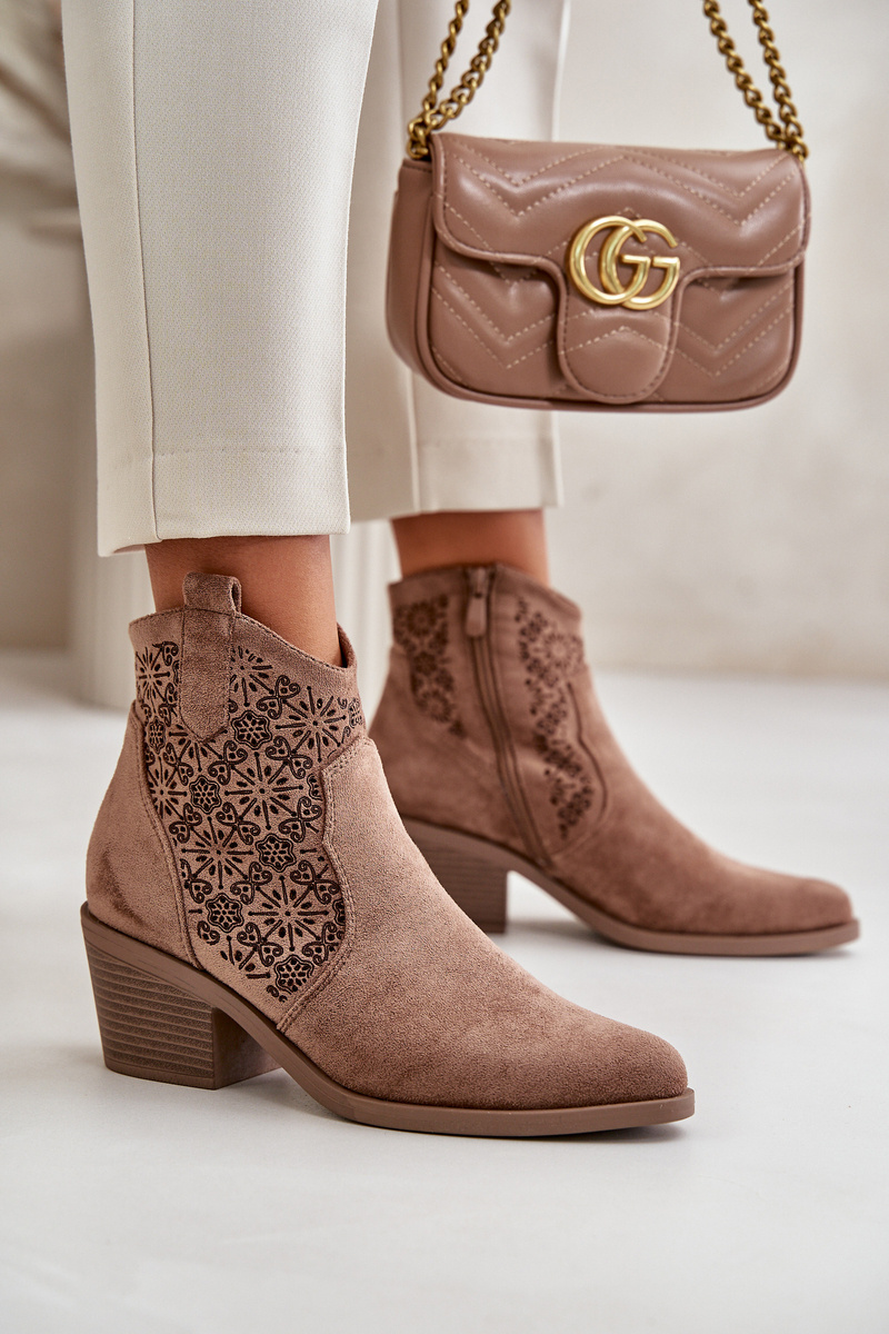 Жіночі ботильйони з м'якої та приємної на дотик еко-замші. Перфорований верх надає їм легкості та елегантності, що робить їх ідеальними для теплих днів. Встановлюється на стійкий каблук. Ця модель має практичну застібку-блискавку, яка полегшує взування та знімання взуття. Загострені пальці. Ідеально підходить як для повсякденного, так і для більш елегантного вбрання. Універсальне доповнення до гардеробу будь-якої модниці. Обираючи розмір, орієнтуйтеся на таблицю розмірів.