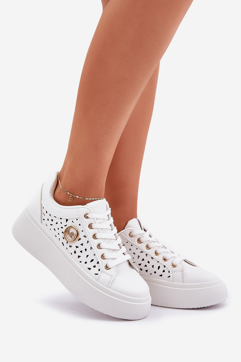 Перфоровані кросівки з золотим елементом білі Cassildi