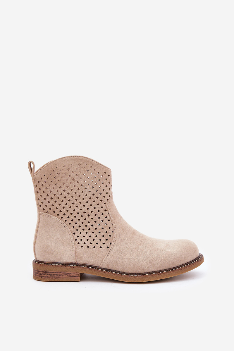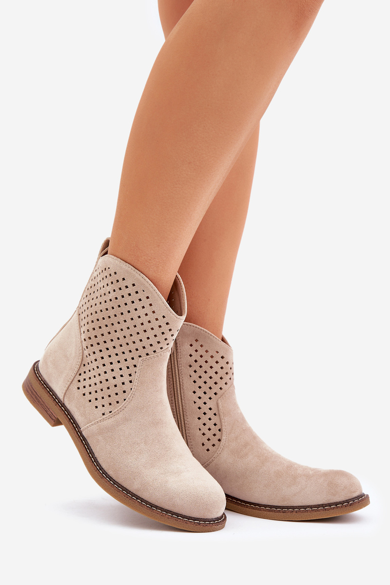 Жіночі ботильйони з еко-велюру – ідеальний вибір для весняних днів. Перфорований верх надає їм легкості та забезпечує повітропроникність, а закруглені носи додають делікатності. Модель на плоскому каблуку гарантує комфорт протягом усього дня. Завдяки практичній застібці на блискавці, надягати та знімати взуття надзвичайно легко. Шкіряна устілка дбає про комфорт ніг, що робить ці ботильйони відмінним рішенням як для повсякденних, так і для більш елегантних образів. Поєднання стилю та функціональності в одному! Будь ласка, зверніться до розмірної сітки при виборі розміру.