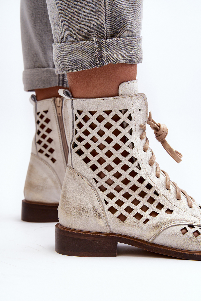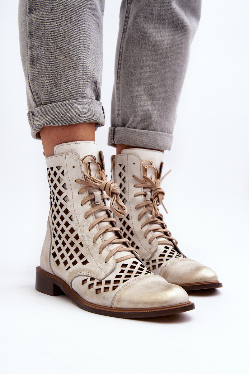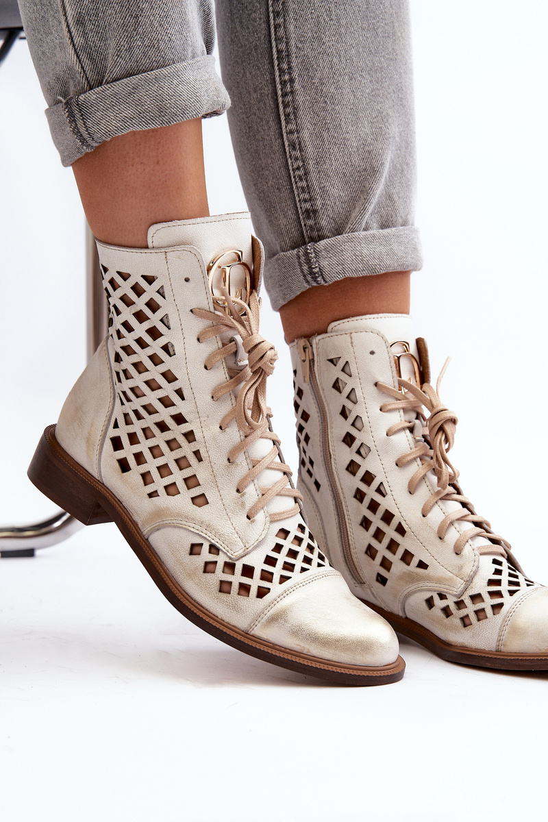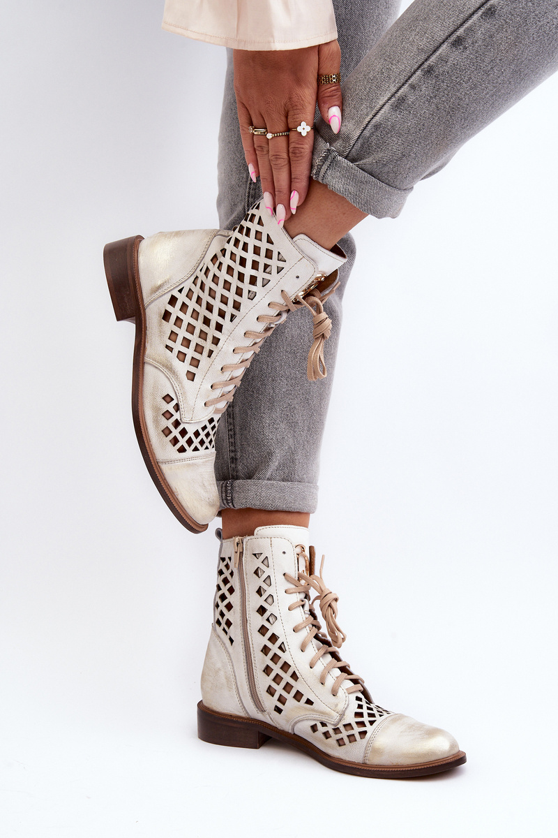 Перфоровані шкіряні черевики Zazoo 2695 Gold Distressed