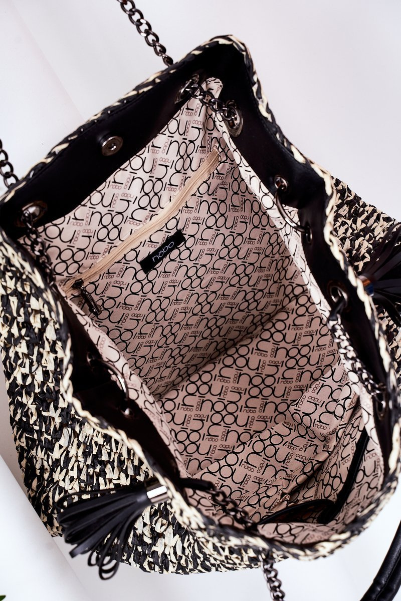 Плетена сумочка NOBO. Зовнішня частина сумки виготовлена ​​з 100% паперу. Всередині сумки 100% поліестер. Сумка має одне відділення, яке застібається на магніт. Всередині три кишені для телефону і дрібниць. Сумка має знімний регульований ремінь з екошкіри. Обов’язково перегляньте всю нашу колекцію сумок NOBO.