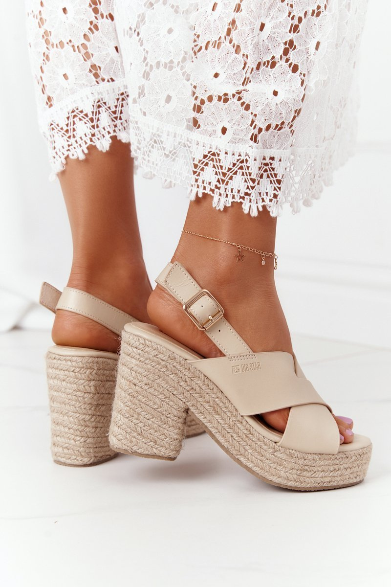 Плетені босоніжки на каблуці з великою зіркою HH274388 Бежеві