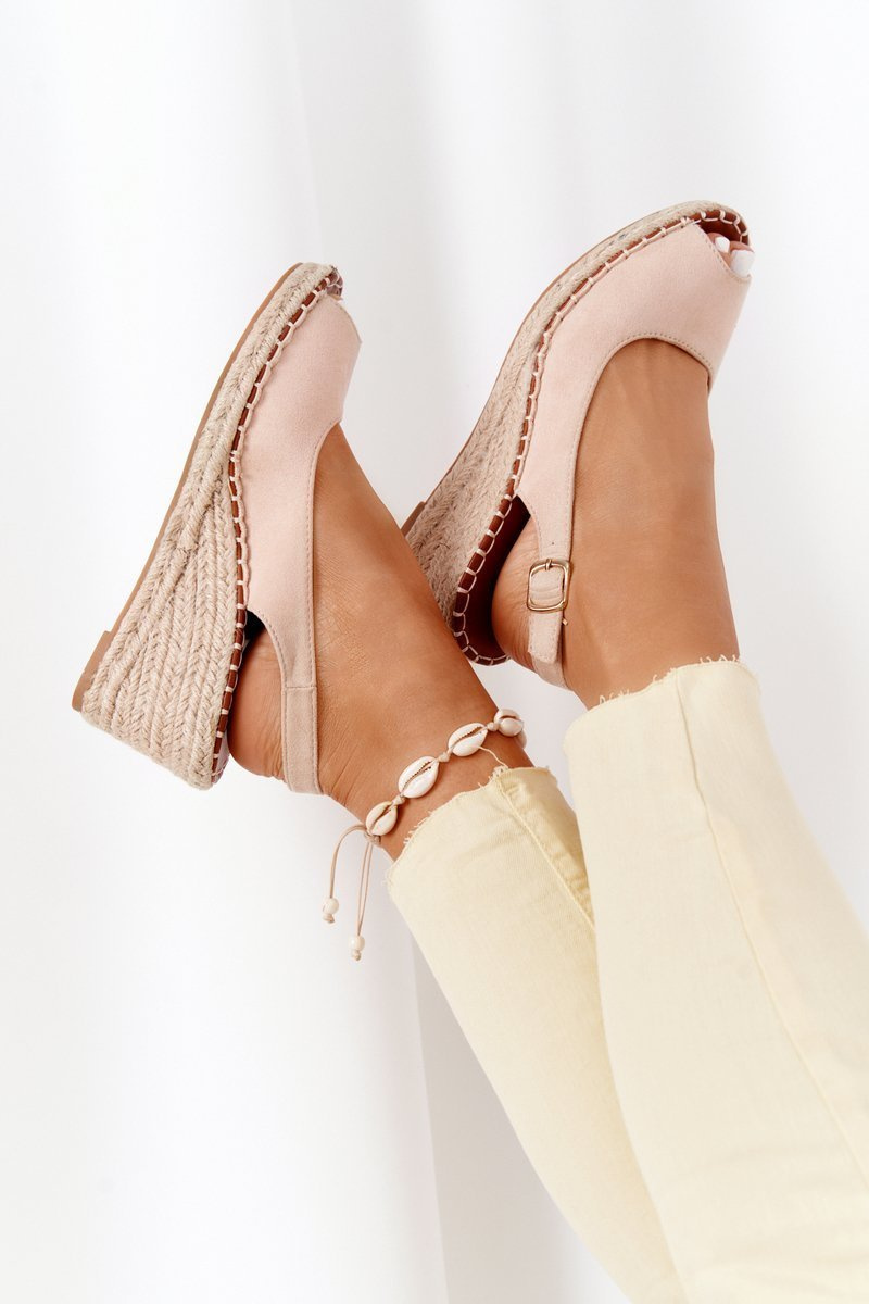 Плетені босоніжки на танкетці бежеві Las Palomas