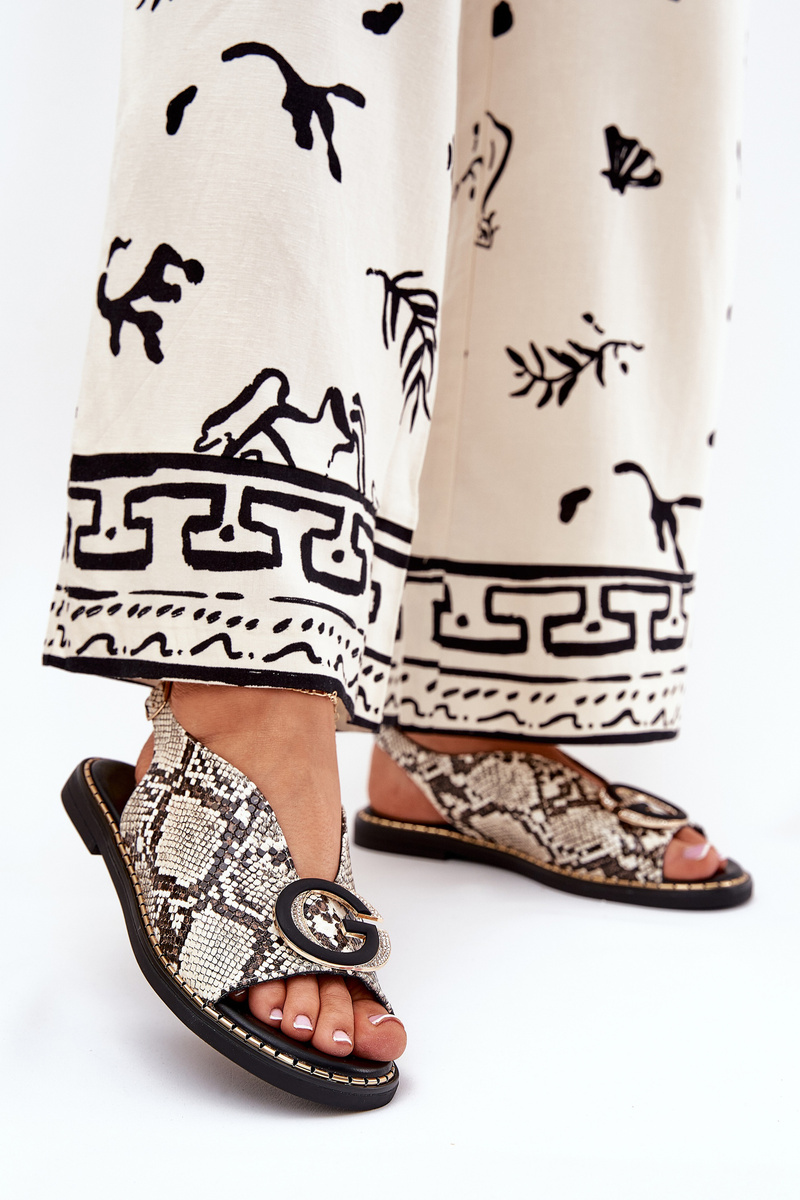 Плоскі Сандалі З Декорацією Зміїний Візерунок Бежево-Коричневі Haliones