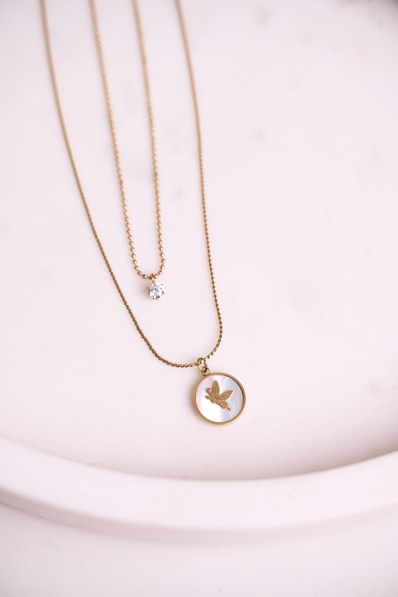 Подвійне намисто метелик і золотий метелик із кубічного цирконію