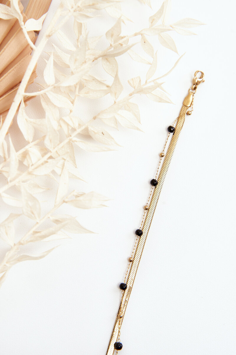 Гарний подвійний браслет виготовлений з нержавіючої сталі. Має один тонкий якірний ланцюжок з маленькими намистинами і ланцюжок-змійка. Браслет регулюється по довжині. Це чудово виглядатиме на ваших руках. Має класичну застібку. Він обов'язково повинен бути у вашій колекції браслетів!