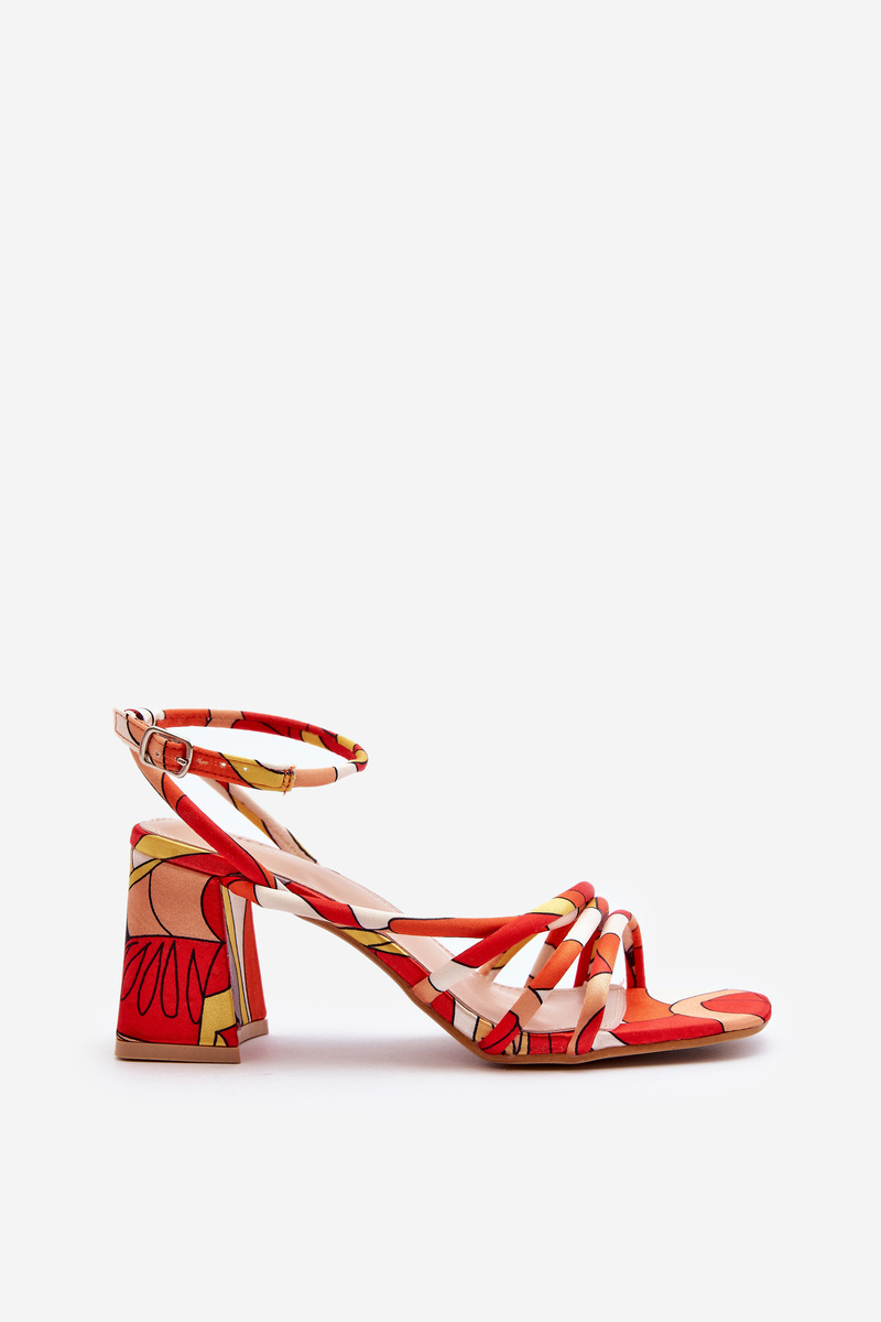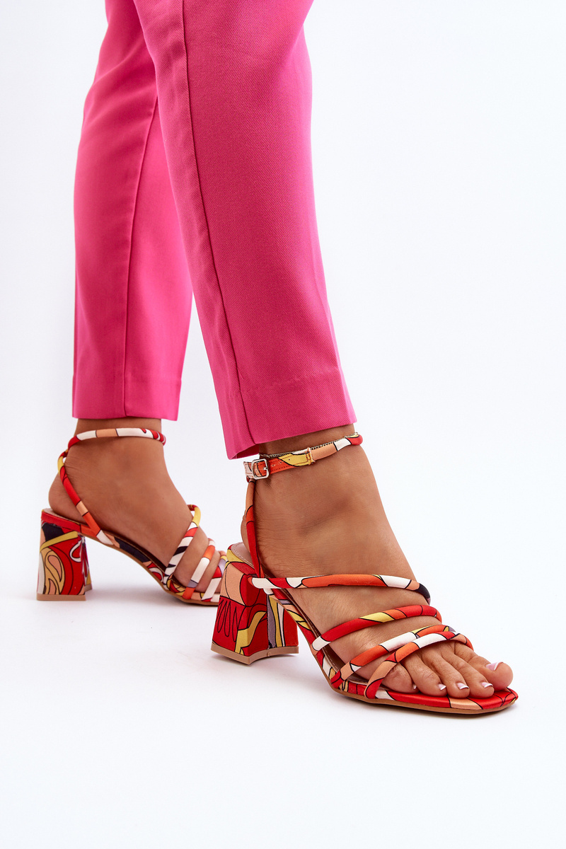 Помаранчеві босоніжки з малюнком і каблуком Jenglla