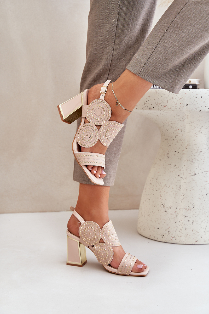 Жіночі сандалі, виготовлені з еко-замші. Встановлені на стійкому каблуці з дзеркальним золотим елементом. Декор надає їм унікального блиску та елегантності. Модель застібається на регульованому ремінці з пряжкою, що забезпечує ідеальну посадку та комфорт під час носіння. Безліч прикрас надає їм виняткової привабливості. Ці сандалі стануть ідеальним вибором для вечірніх виходів та особливих подій, поєднуючи комфорт з елегантним виглядом. Будь ласка, зверніться до розмірної сітки при виборі розміру.