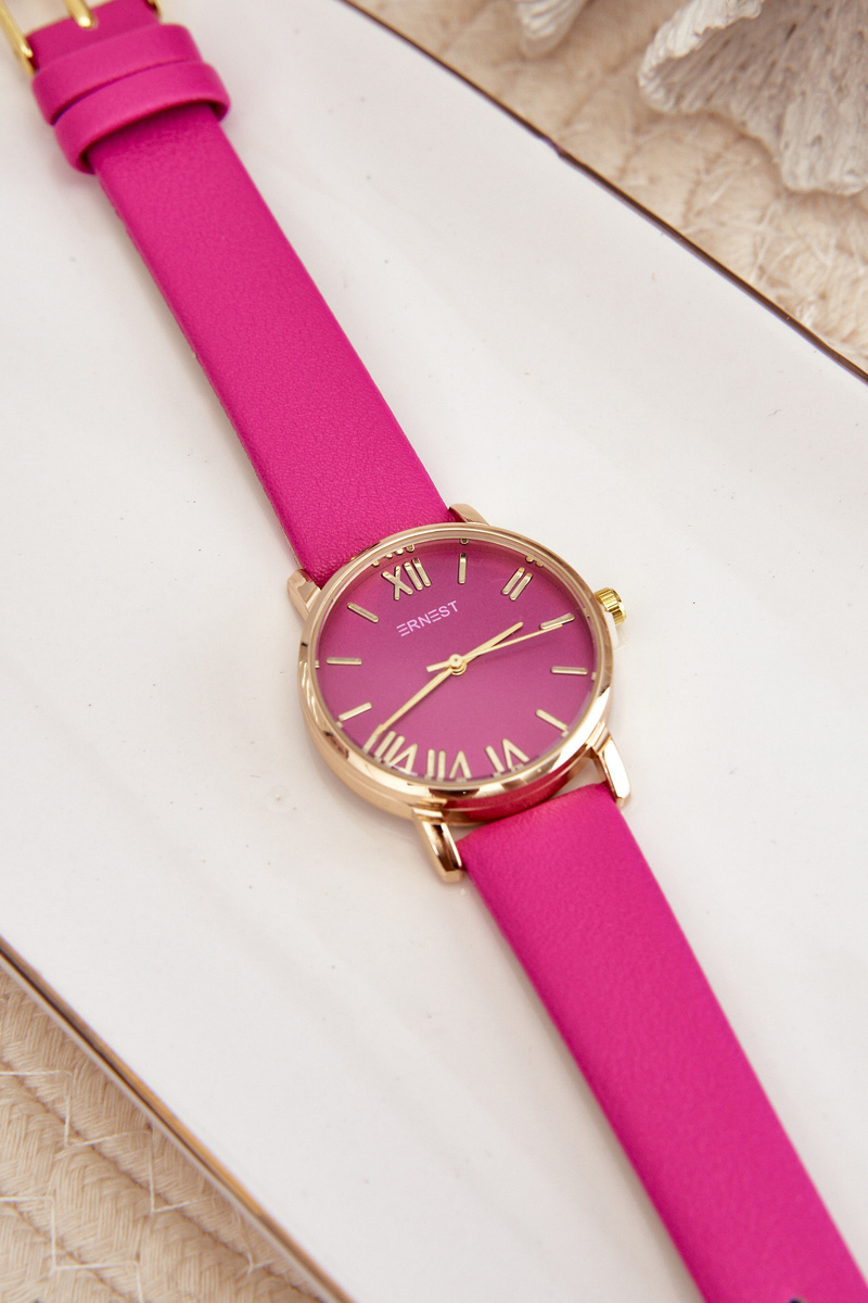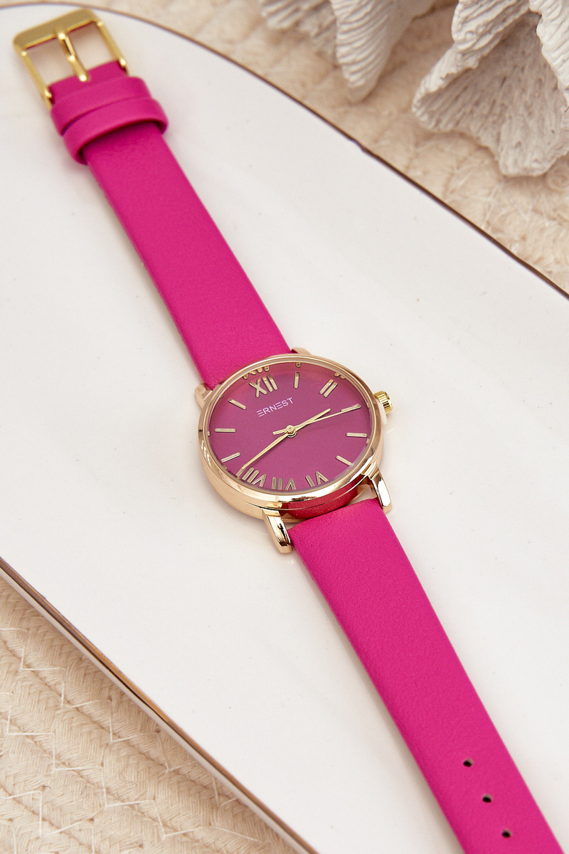 Жіночий годинник Ernest. Ремінець виготовлений з екошкіри. Проста, але виняткова форма цього годинника робить його ідеальним аксесуаром як для повсякденних, так і для офіційних випадків. Завдяки своїй універсальності та елегантності він завжди стане вишуканим доповненням до будь-якого вбрання.