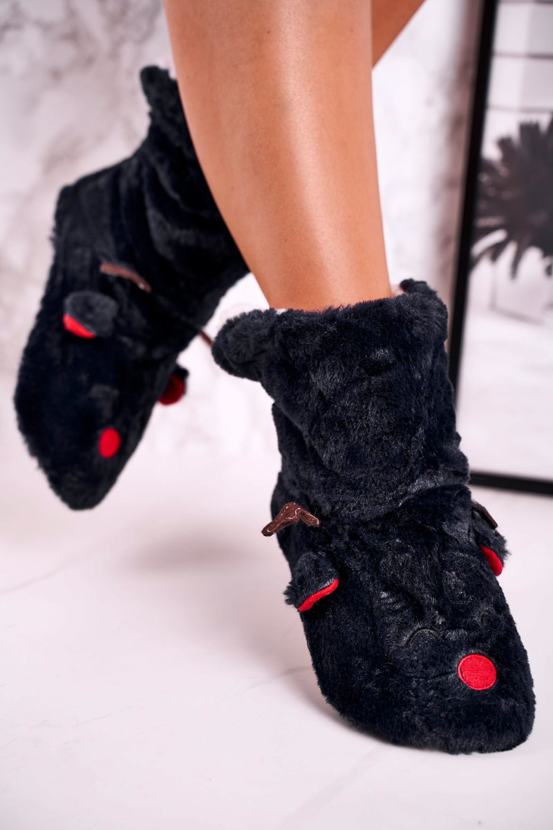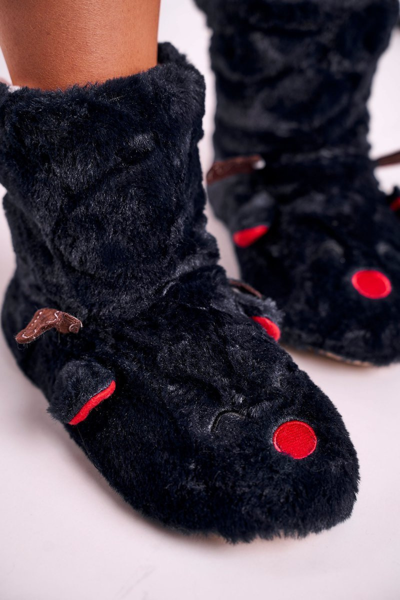 Різдвяні утеплені тапочки з оленем Чорним Рудольфом