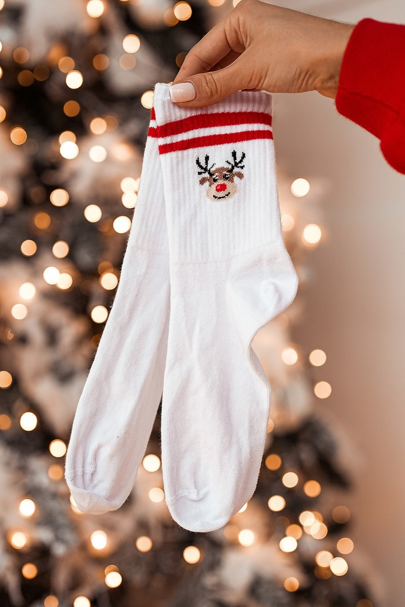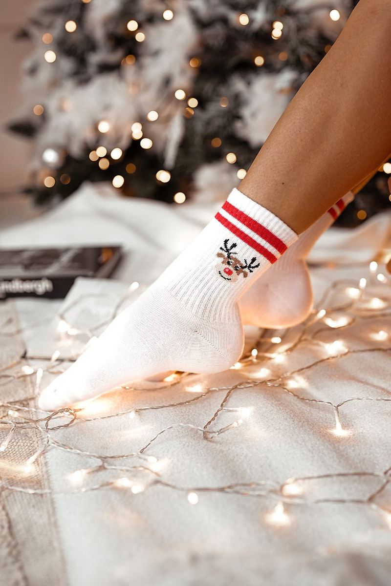 Різдвяні шкарпетки оленя смугасті з смужками білі