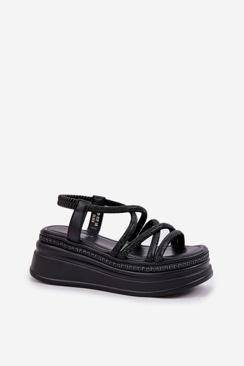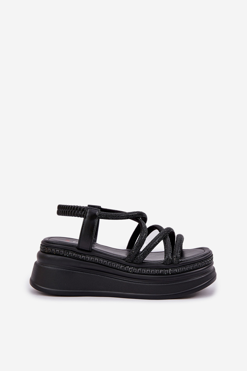 Сандалі На Масивній Платформі З Переплетеними Ремінцями Чорні Lanathea