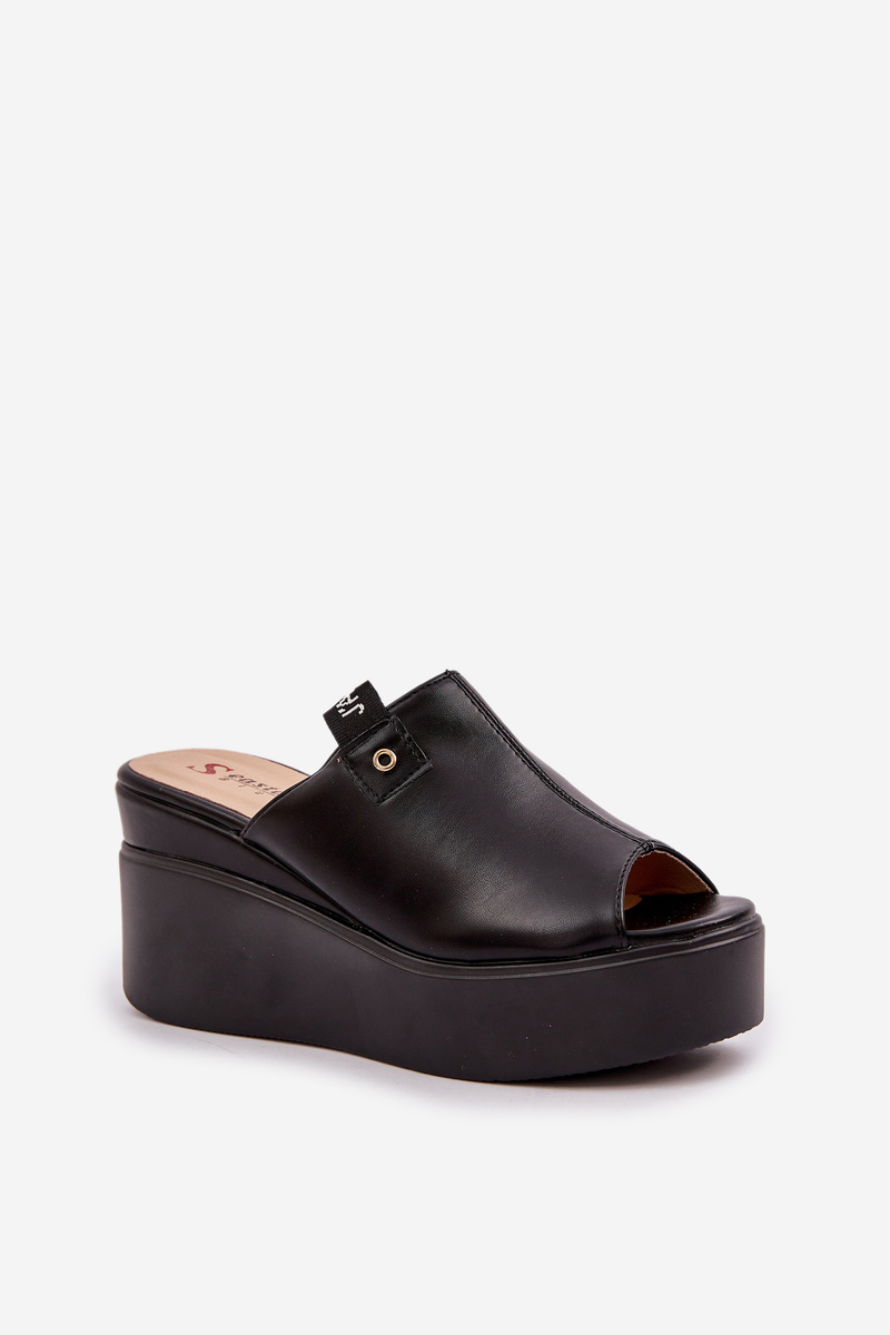 Сандалі На Платформі І Котурі Еко Шкіра Чорні Eridoria