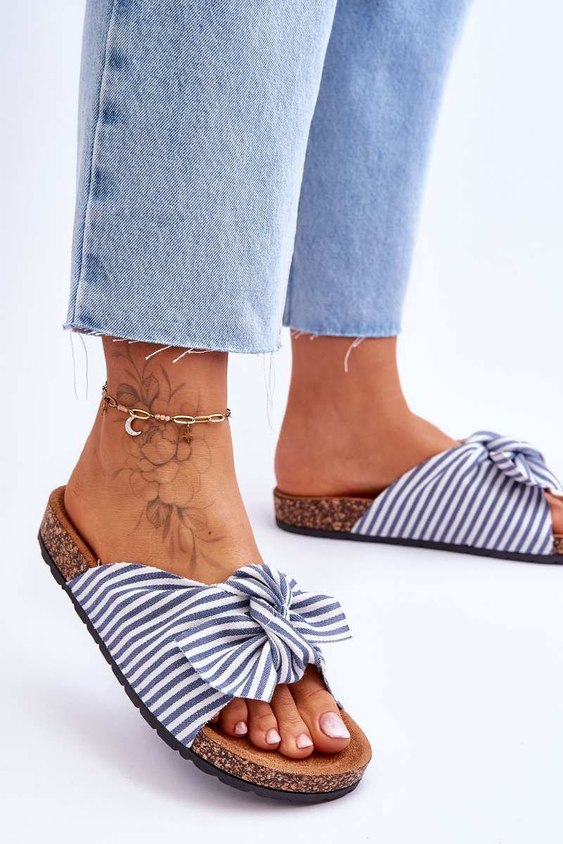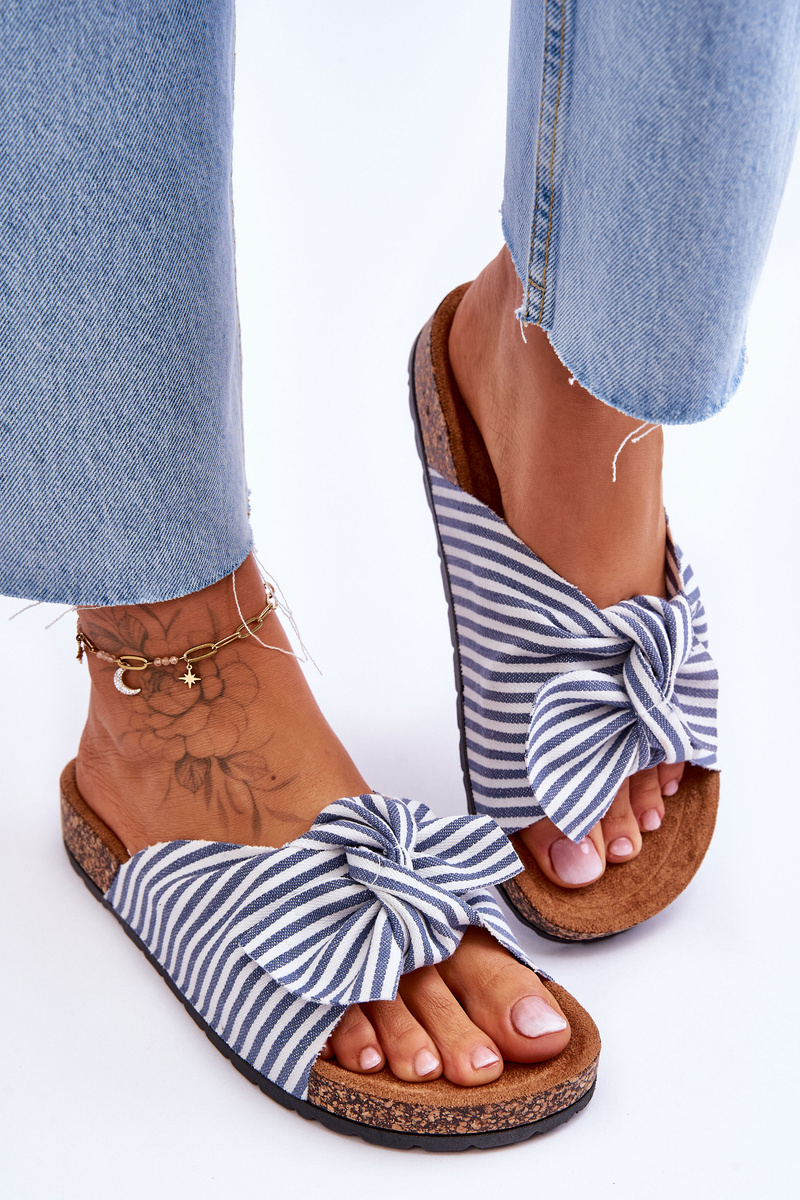 Святкові шльопанці на корковій платформі з біло-блакитними смужками