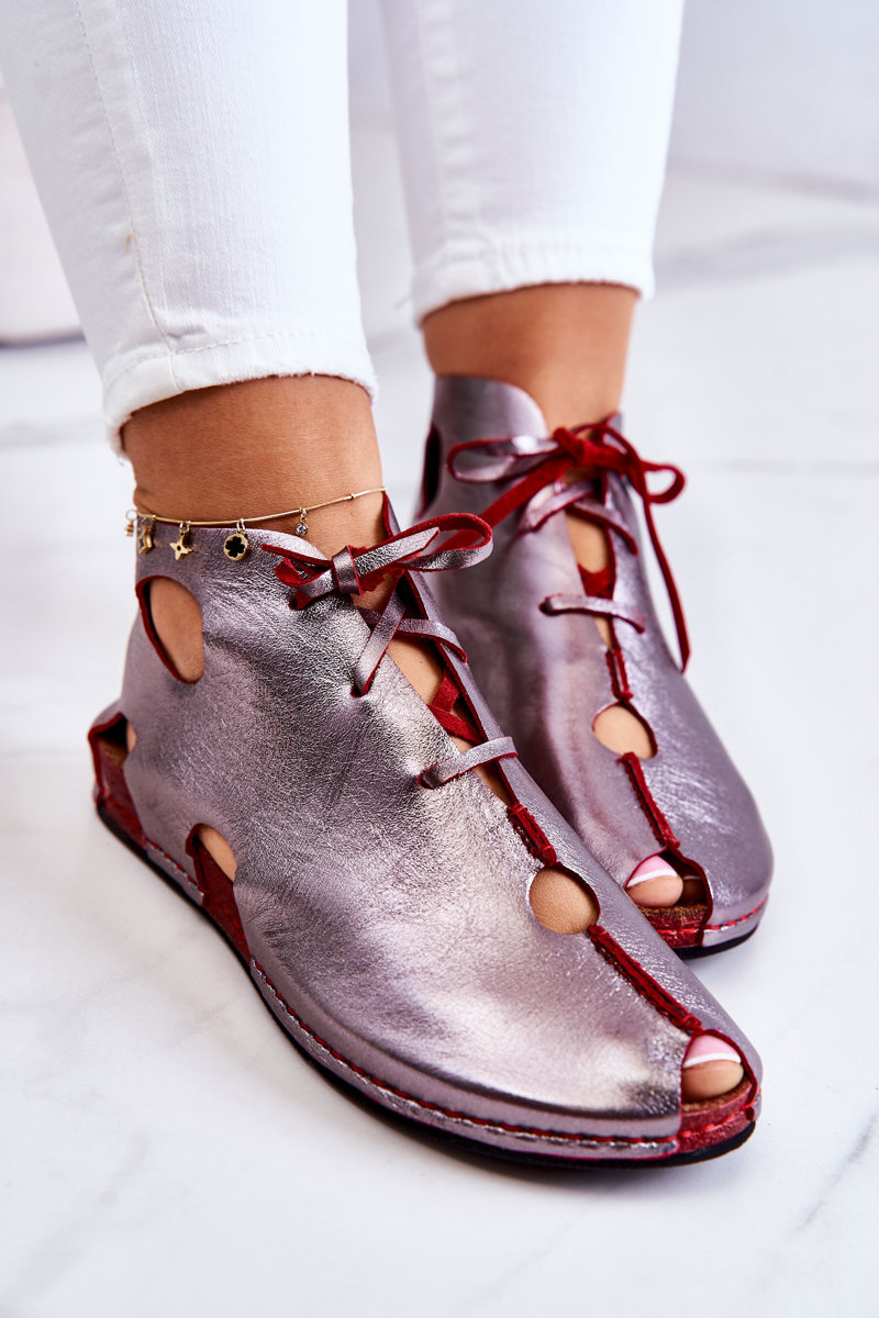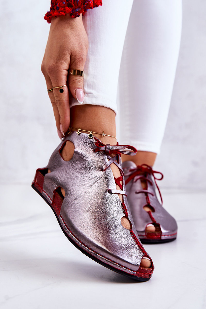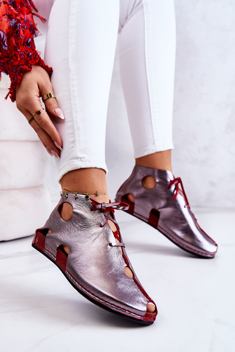 Світлі шкіряні черевики Maciejka 03426-20 сріблясто-червоні