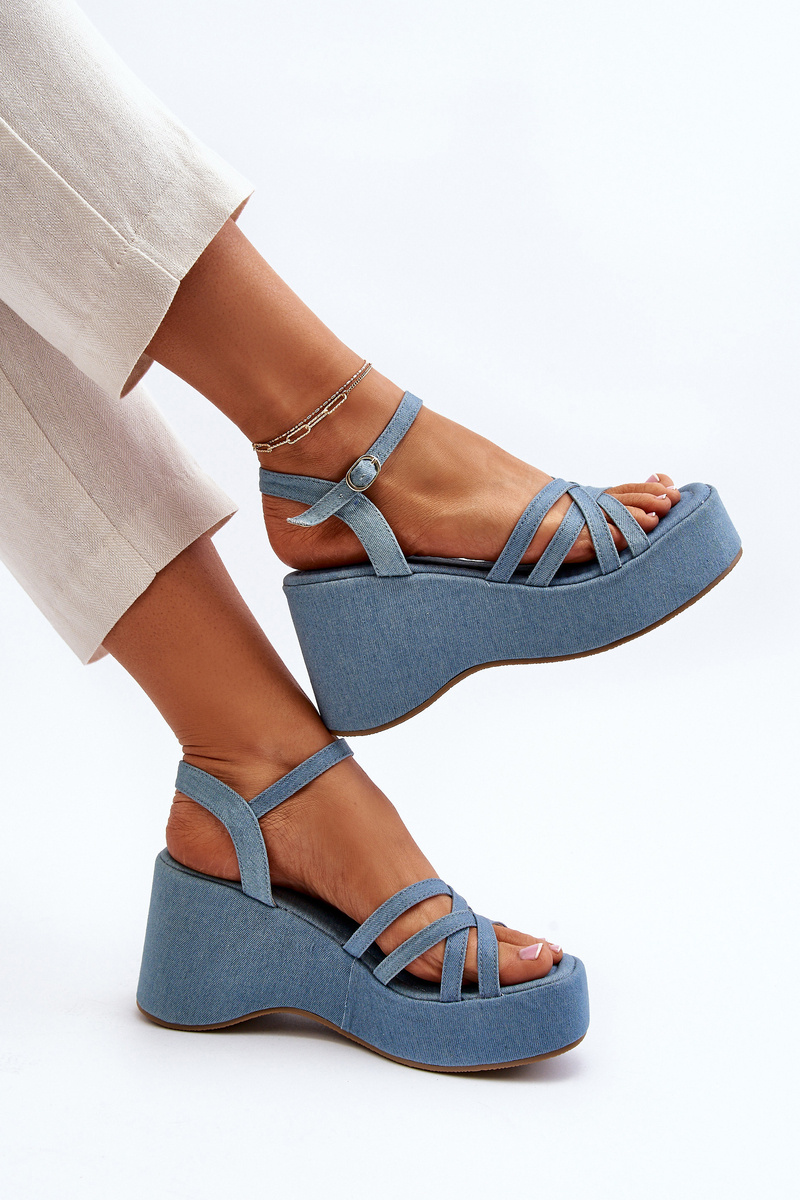 Сині босоніжки на платформі та танкетці Oporia
