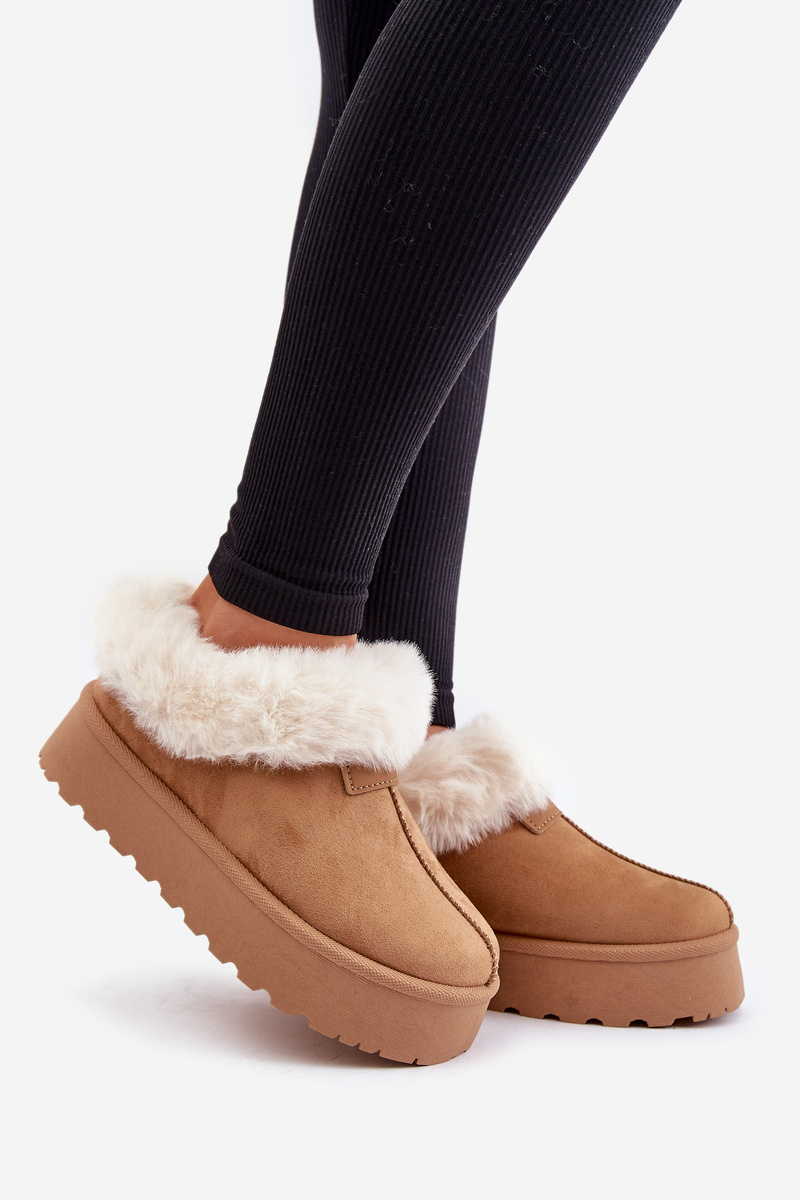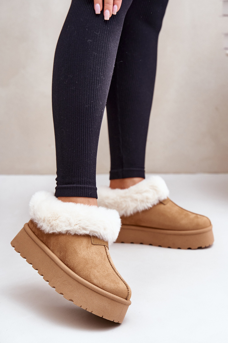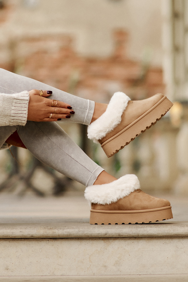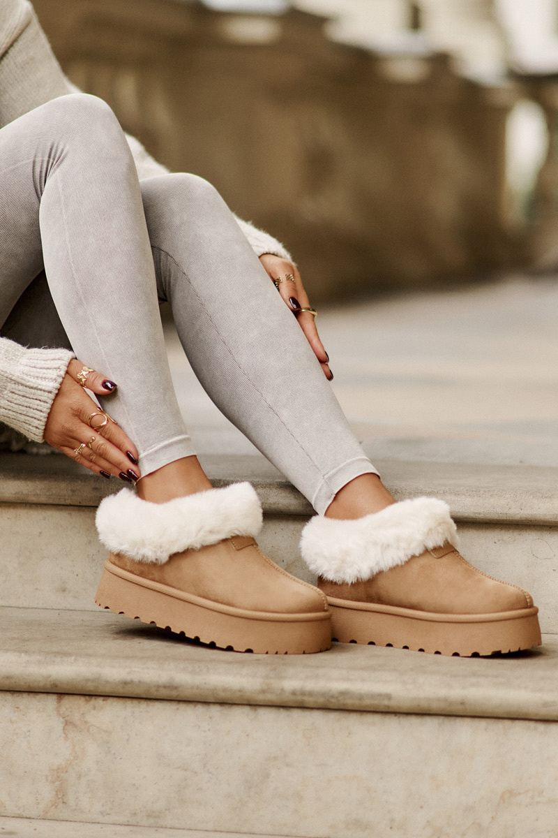 Снігові черевики з низькою халявою з хутром на платформі. Еко-замша Camel Neathoria