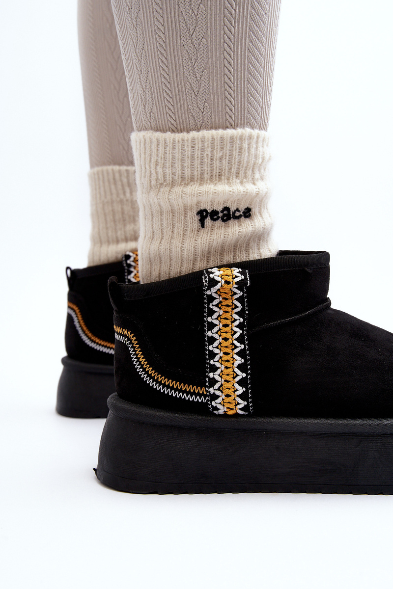 Черевики на платформі - наймодніший стиль цього сезону! Дана модель виконана з еко замші. Товста підошва з гумового матеріалу добре ізолює від холоду. Щиколотка прикрашена ацтекським візерунком. Всередині обшито хутром. Ви обов'язково повинні їх мати! Обираючи розмір, орієнтуйтеся на таблицю розмірів.