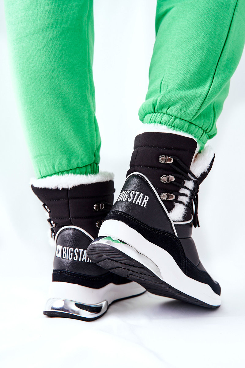 Виняткові снігові черевики від бренду Big Star! Взуття всередині неймовірно приємне на дотик, завдяки використанню утеплювача у вигляді хутра. Устілка виготовлена з матеріалу. Зовнішня частина взуття виконана з текстильного матеріалу та замші. Взуття ідеально підганяється по нозі завдяки кріпленню. На п'яті є логотип Big Star. У цих снігових черевиках Вам не буде страшна ніяка погода! Вибираючи розмір, дотримуйтеся таблиці розмірів.