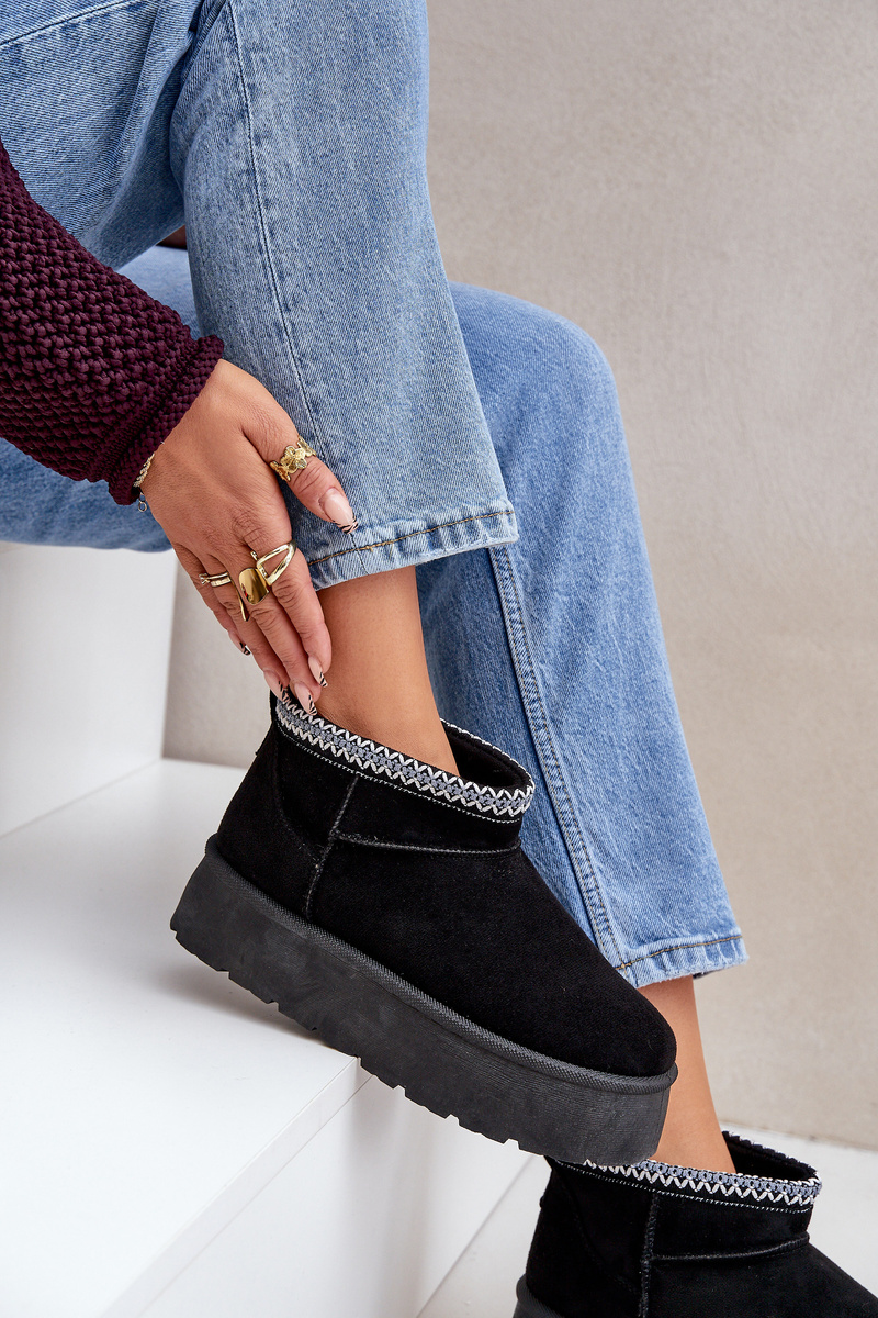 Снігоступи на платформі з декоративною вишивкою чорні Heslania