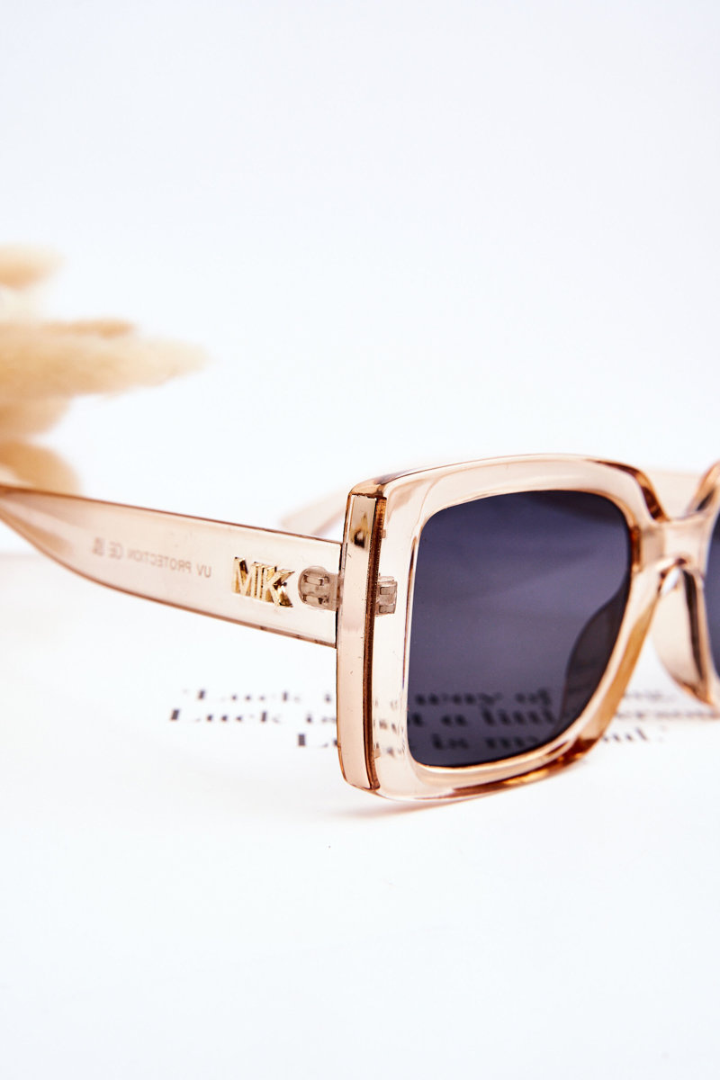 Жіночі сонцезахисні окуляри виготовлені з пластику. На скронях мають декоративні літери. Дана модель має вбудований пластиковий носик. Такий крій сподобається багатьом любителям модних аксесуарів! Інформація від виробника: УФ захист, категорія 3.