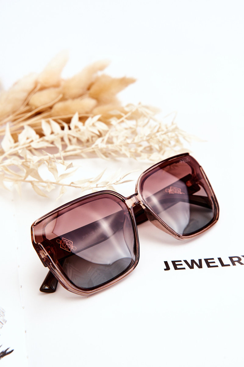 Класичні сонцезахисні окуляри виготовлені з пластику. Мають прикраси на скронях у вигляді ромба з квіткою. Модель у стилі Wayfarer. Ці окуляри ідеально підходять для сонячних днів завдяки поляризованим лінзам. Інформація від виробника: захист від UVA, UVB та UVC.