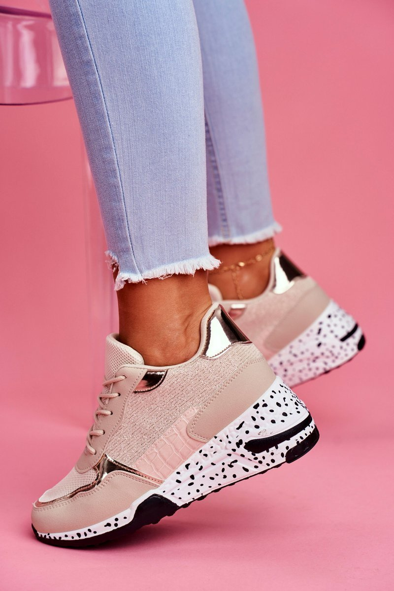 Чудове спортивне взуття, виготовлене з високоякісних матеріалів. Класичний крій у поєднанні з товстою підошвою та прихованим внутрішнім якорем, який підніме та підкреслить наш силует. Вони чудово підійдуть для повсякденних прогулянок містом. Необхідно мати у вашій колекції. Обираючи розмір, дотримуйтеся таблиці розмірів.