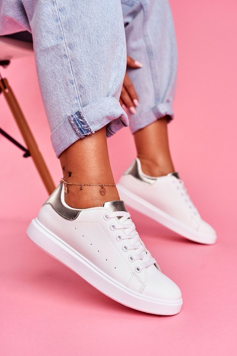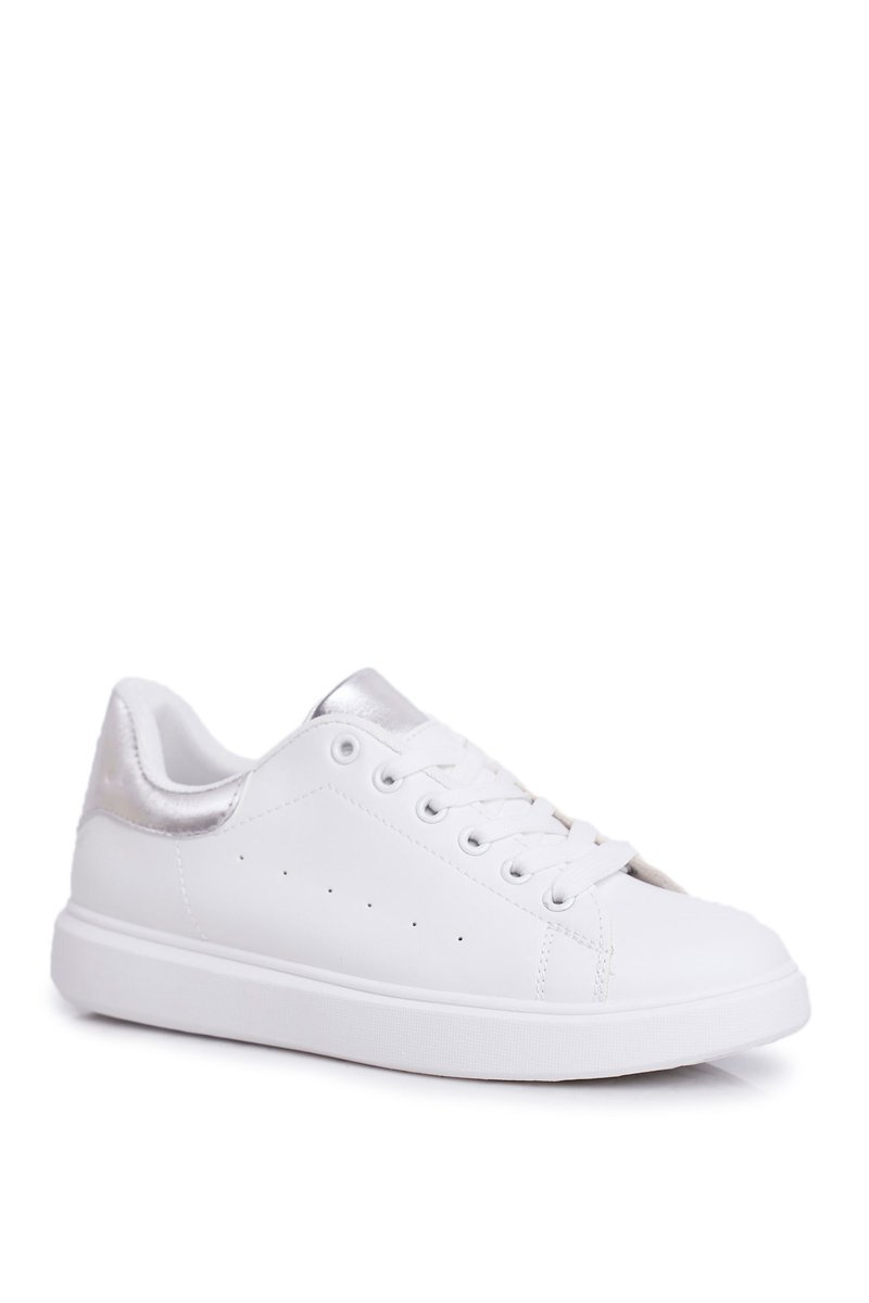 Спортивні жіночі білі туфлі на сріблястому каблуці Milly