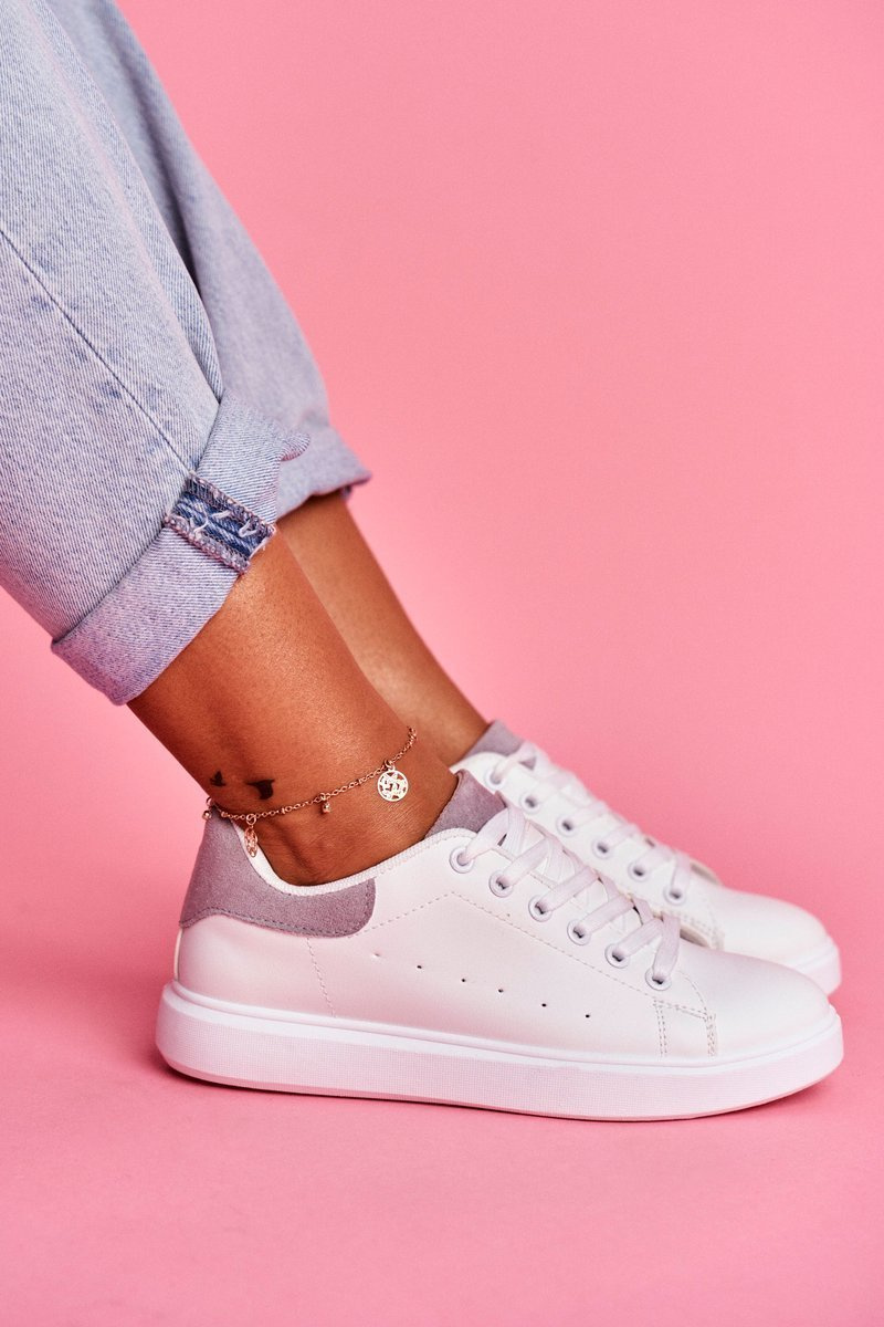 Спортивні жіночі білі туфлі на сірому каблуці Milly