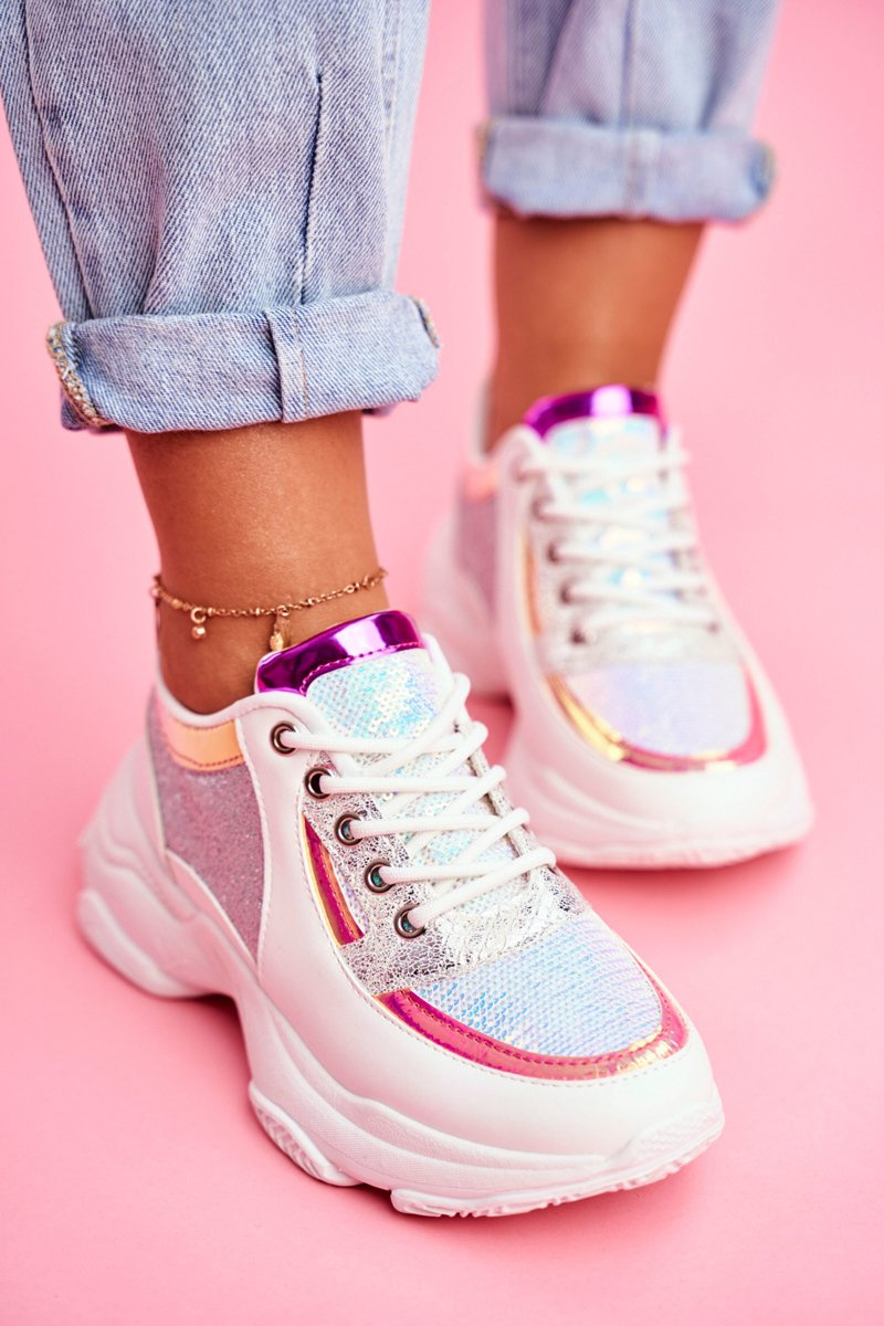 Якщо ви цінуєте комфорт і зручність під час повсякденних обов’язків, обов’язково перегляньте нашу пропозицію спортивного взуття. Кросівки прикрашені глітером і голографічними вставками. Про наш комфорт подбає м'яка вентильована устілка. Обираючи розмір, дотримуйтеся таблиці розмірів.