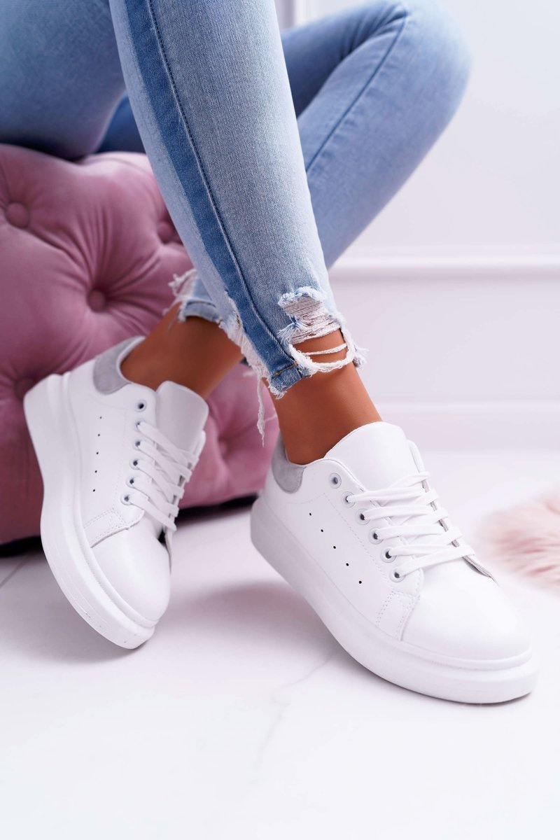 Спортивні жіночі туфлі на товстій підошві Біла сіра спідниця