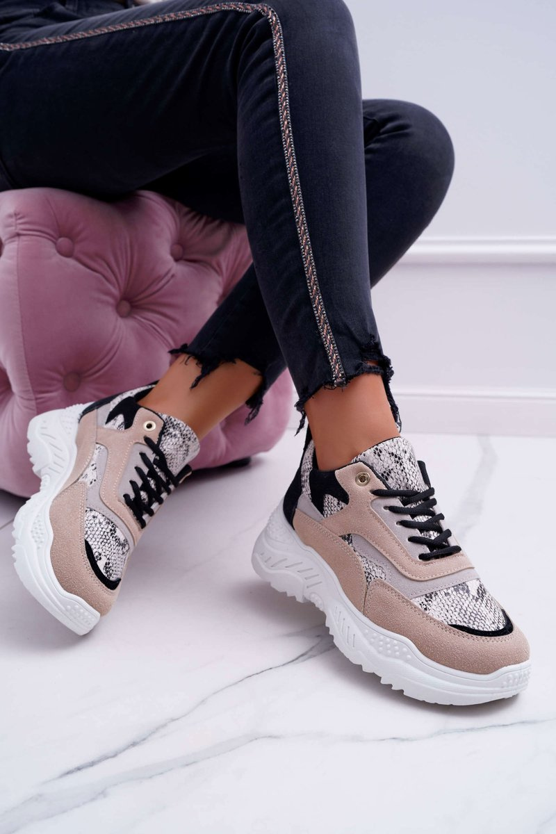 Спортивні жіночі чоботи на товстій підошві бежеві Snake Miltru
