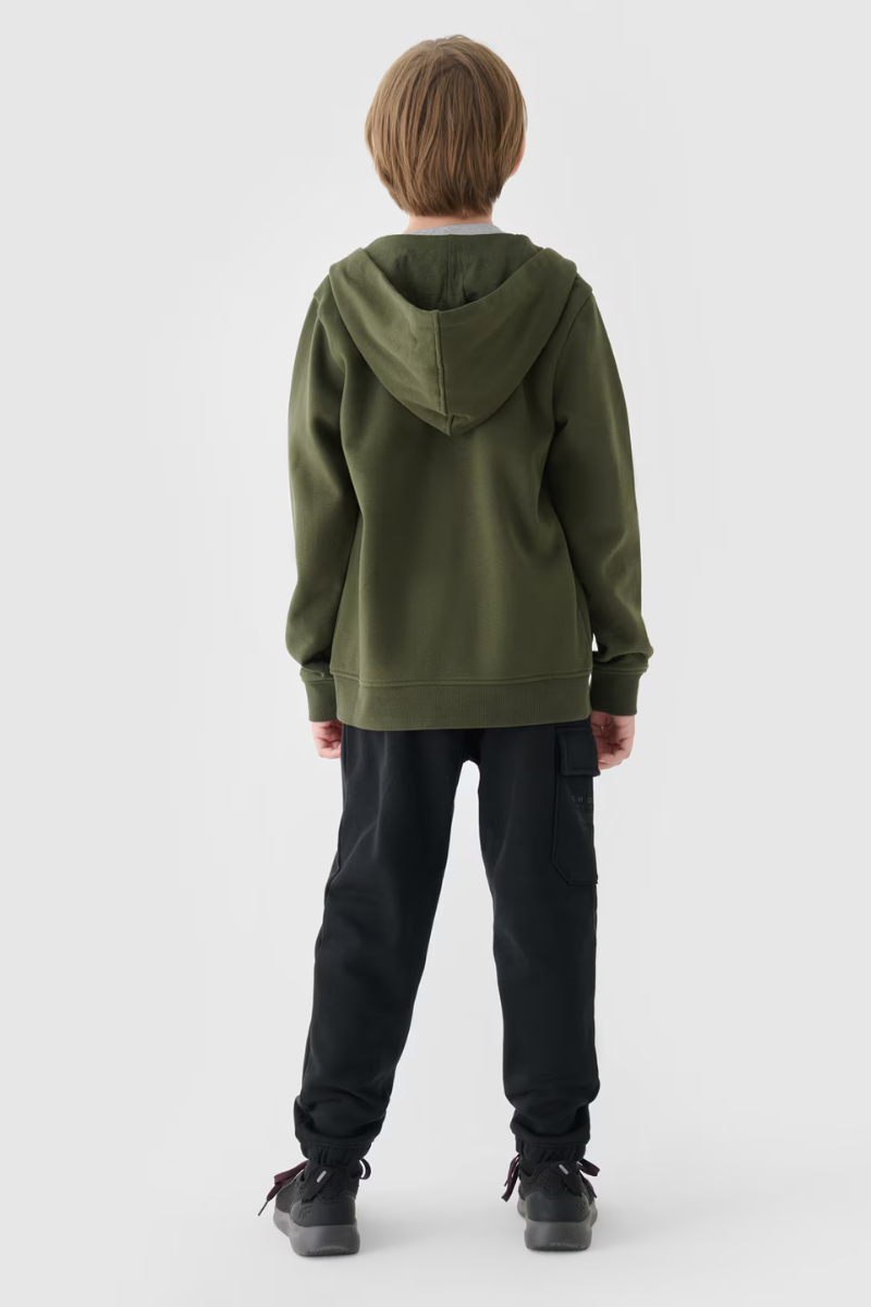 Спортивні штани для хлопчика ідеально підходять як елемент як повсякденного, так і спортивного стилю. Вони мають регулярну посадку, яка зручно адаптується до силуету, і звужені штанини, що закінчуються еластичною манжетою. Одинарна трикотажна трикотажна гладь з одного боку робить їх еластичними та зручними в носінні. Дитячі спортивні штани виготовлені з 80% бавовни, що робить їх м'якими, міцними та приємними на дотик. Додавання поліестеру (20%) гарантує, що матеріал збереже свою форму і буде стійким до зношування навіть протягом багатьох сезонів. Матова внутрішня частина гарантує додаткове тепло, що робить штани ідеальним вибором для прохолодних днів. З боків є 2 відкритих кишені. Додатково є кишеня-карго на зовнішній стороні правого стегна. На ніжці є напис «Choose Your Own Sphere». Еластичний пояс із зовнішнім регулюванням на шнурку.